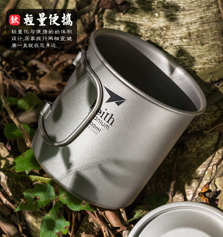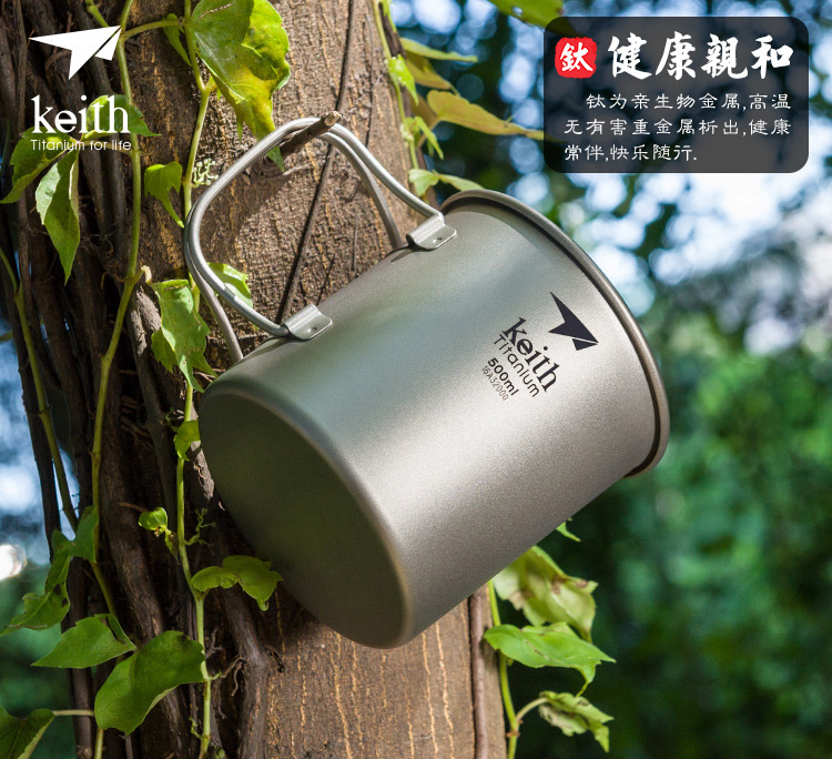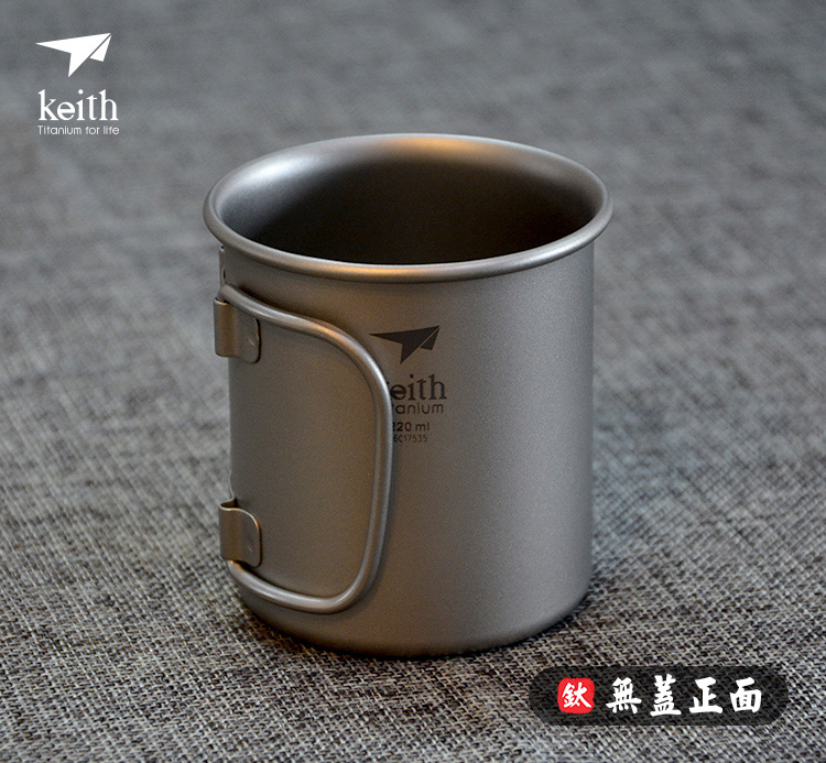 铠斯(KEITH)折叠水杯便携户外杯子钛水杯 可烧水野营钛杯单层杯茶杯野餐郊游 折叠柄 350ML(钛盖)