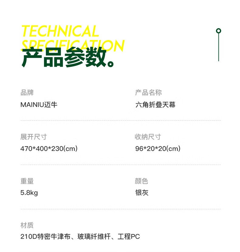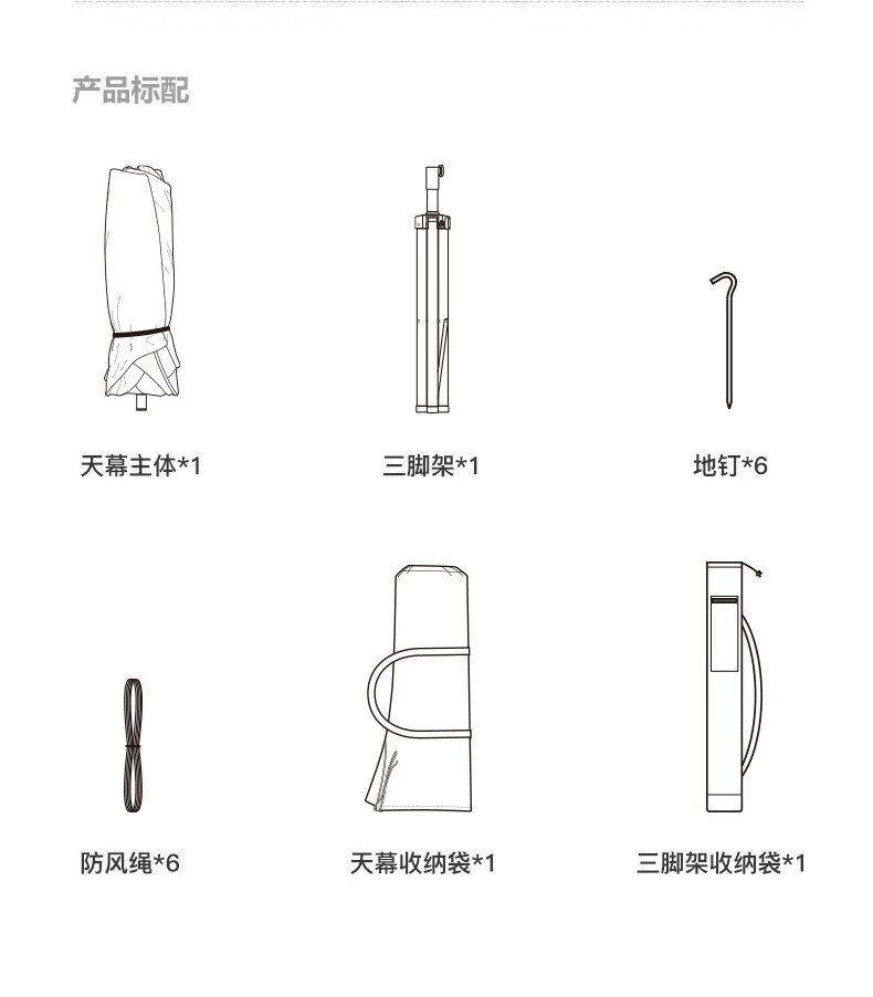这款天幕支撑起来和收纳起来都非常方便,整体稳定性也不错!就是支撑杆的厚度能再厚那么一点点就更好了!东西还比较满意!但愿能使用的时间长一些!这一款的特点,就是不打地丁,单独支撑也可以,不在草地上也可以用!