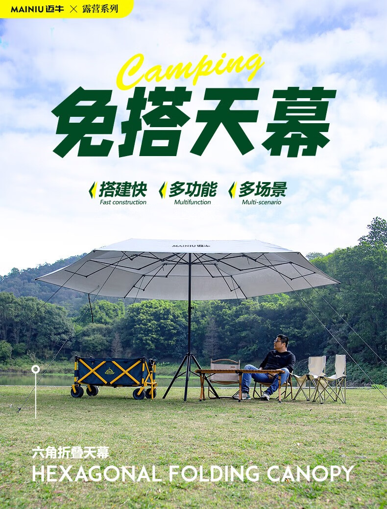 迈牛(MYNEW)迈牛天幕免搭折叠露营士防晒户外遮阳伞庭院伞帐篷黑胶 4.6米天幕黑胶+黑色大号聚拢车