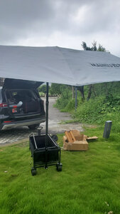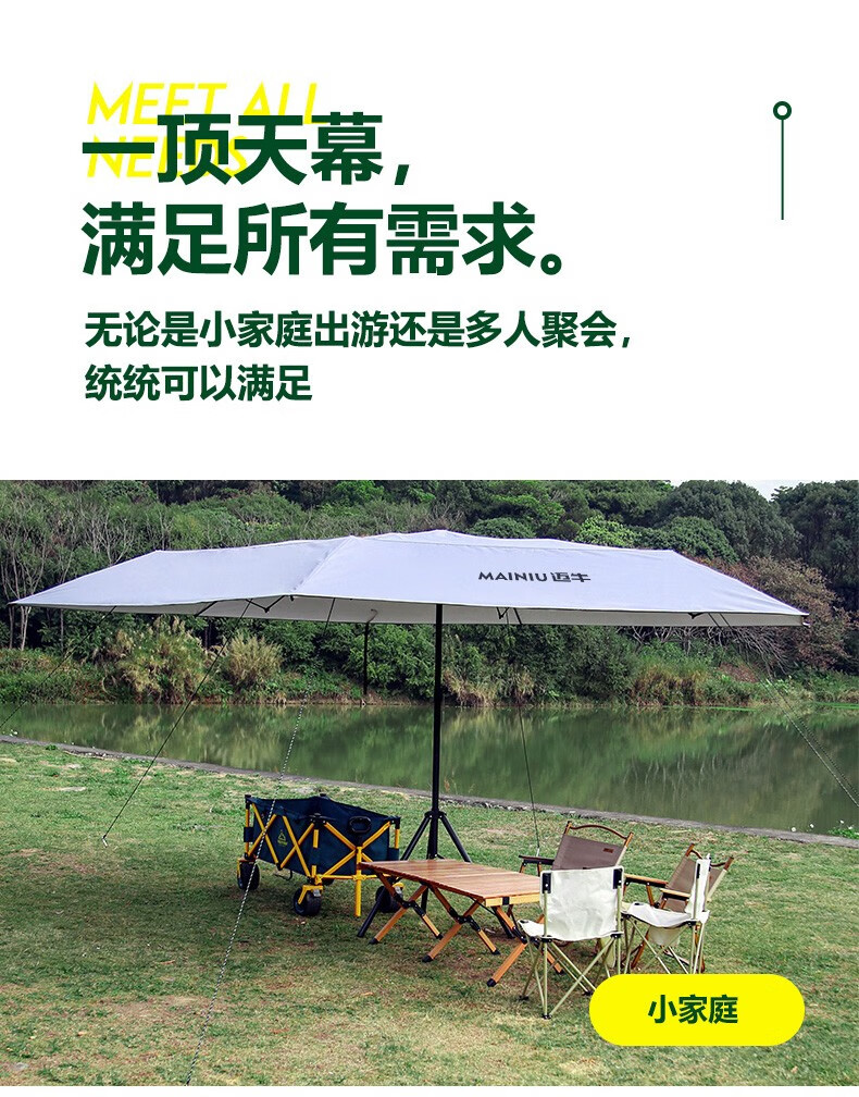 又到了可以户外的季节,看朋友好多买天幕的,自己去~做了攻略,发现这款免搭建天幕,果断拔草,到手之后第一个休息日就迫不及待支上了,真香啊,对我这种露营小白非常友好,俩人基本一分钟完事儿,坐在这全是羡慕的目光,哈哈。我买的3.3米的,四五个人完全够用,好产品,好创新,祝店家大卖!