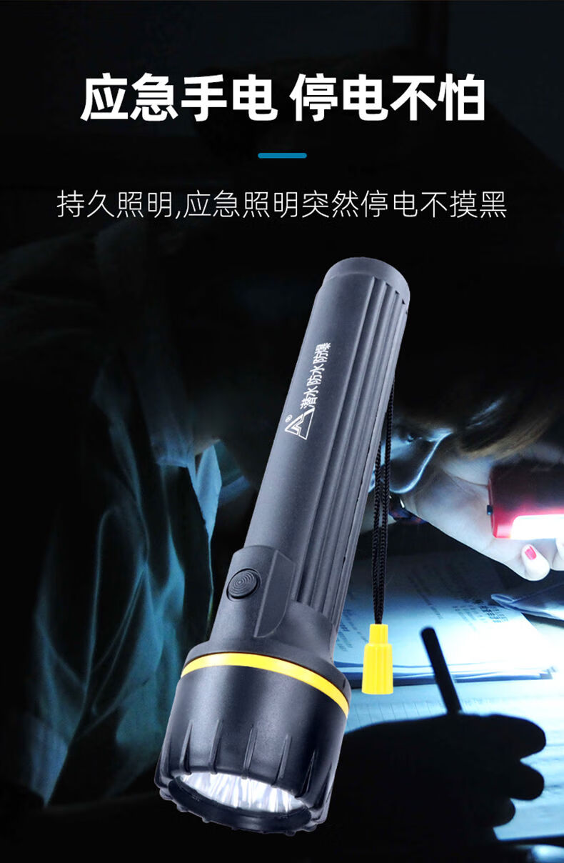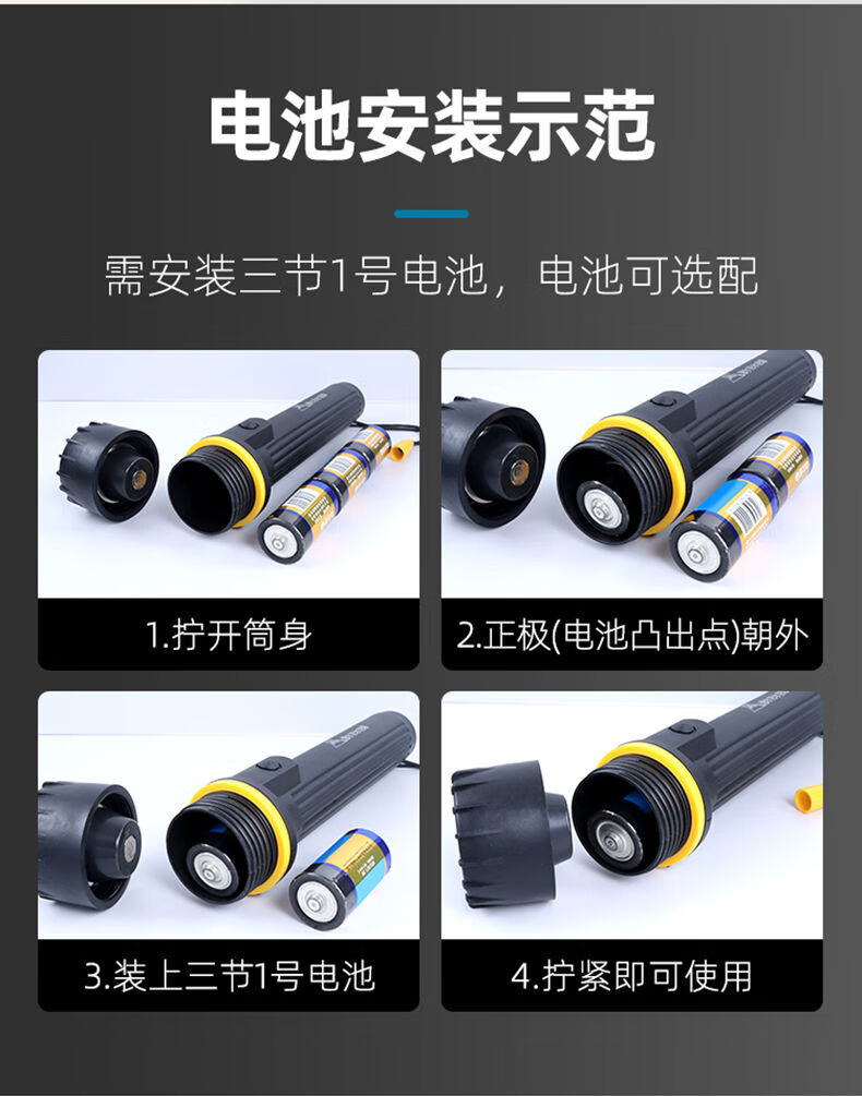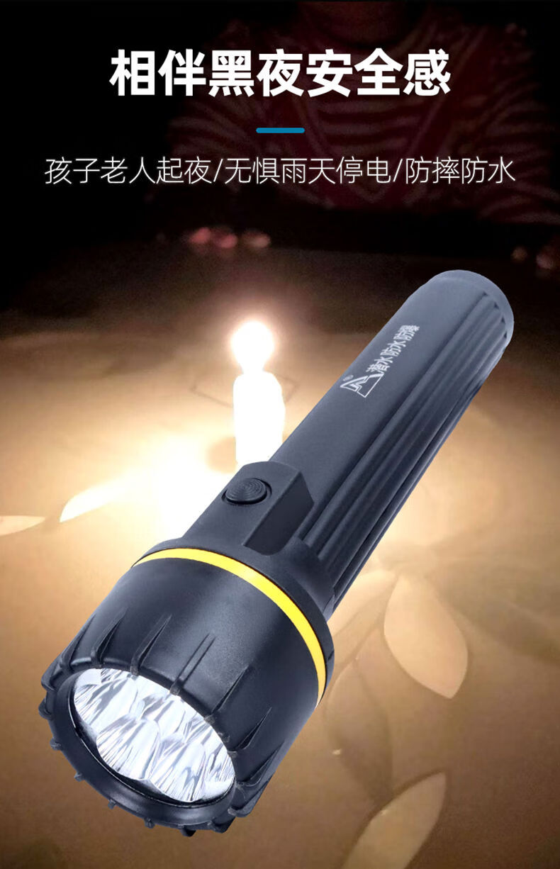 山峰E装3节一号电池防摔强光户外节能干电池手电筒 7个光源不带电池