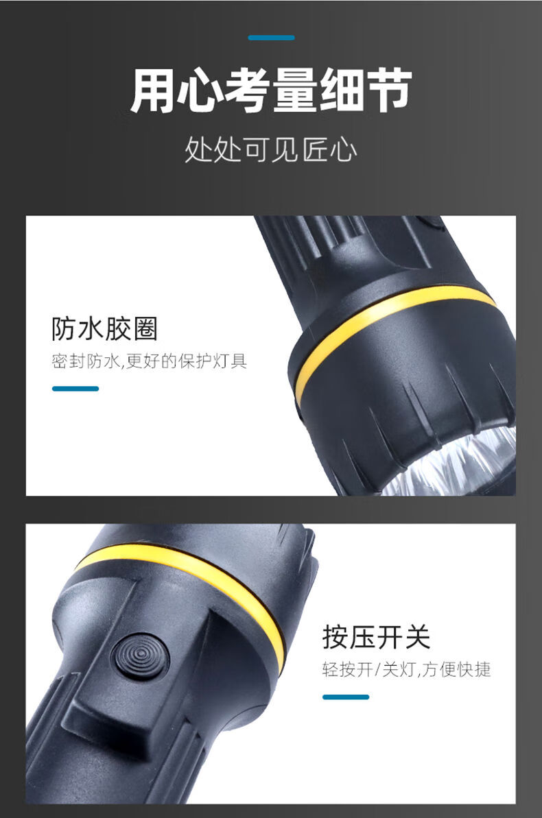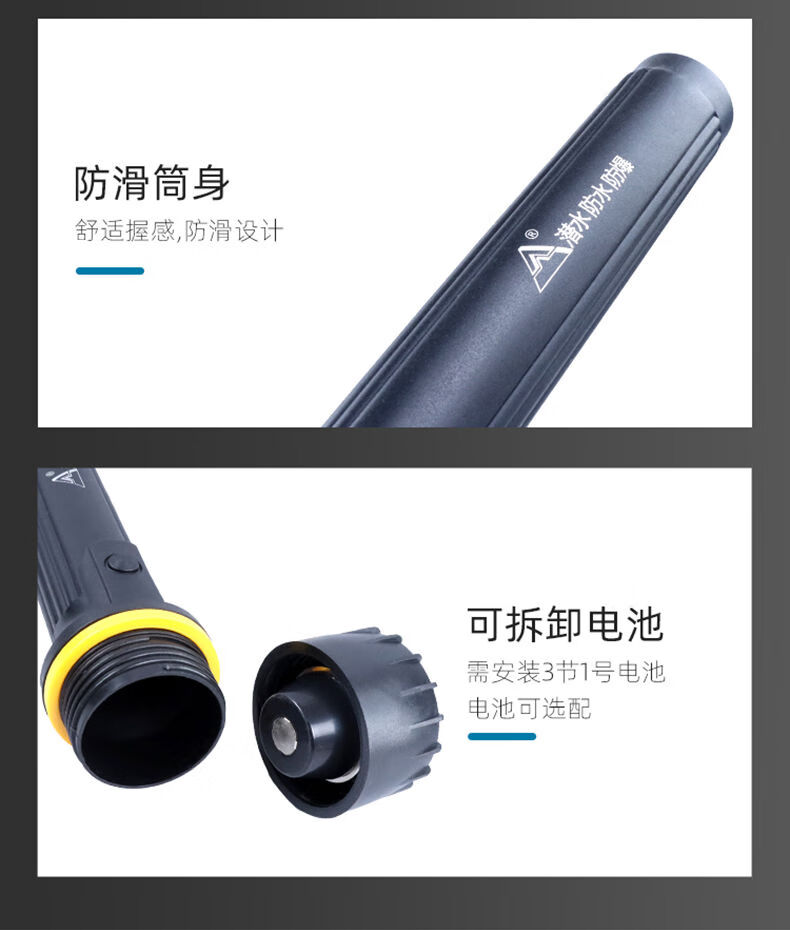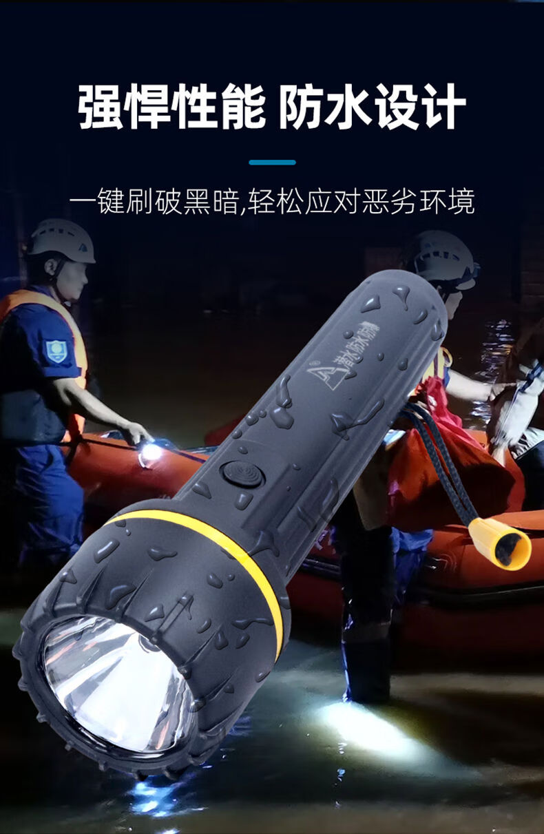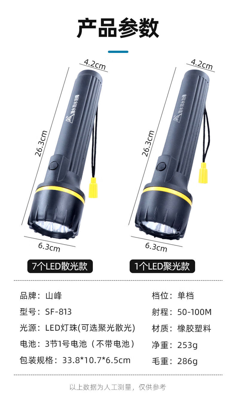 山峰E装3节一号电池防摔强光户外节能干电池手电筒 7个光源不带电池