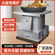 烽点大柴柴火灶炉烧木柴农村家用无烟室内取暖带烤箱移动新式铁锅台 大号银钢柴火炉+2米烟管配件