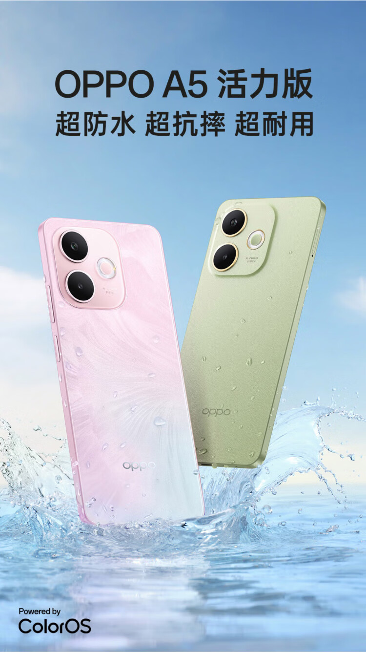 OPPOA5 活力版 IP69满级防水 5G展机360°抗摔 超四年耐用大电池手机 玛瑙粉 12GB+256GB 单机+第三方充电器+店保一年