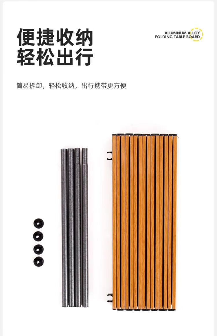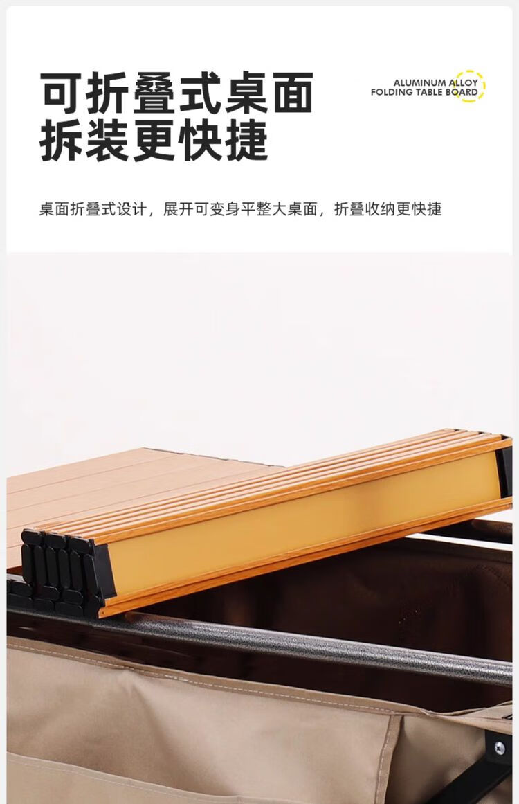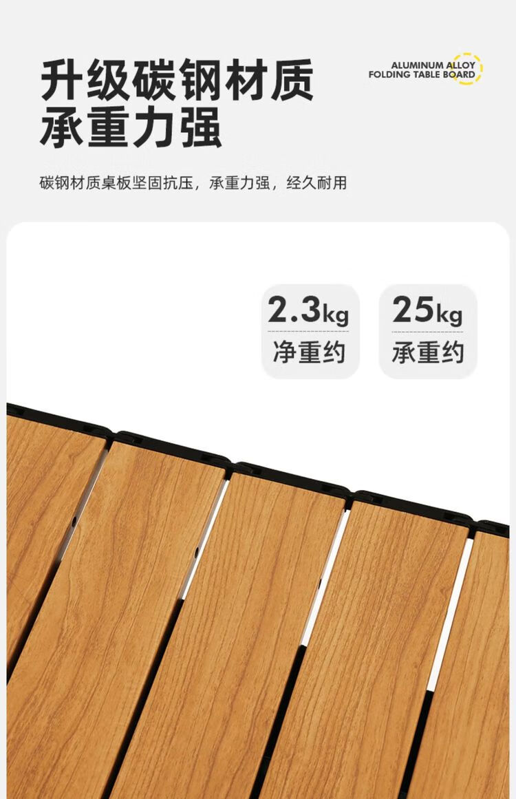 Guide Series户外铝合金折叠桌露营桌便携升降沙滩烧烤桌加宽桌自驾游车载桌 新 加宽金属 木纹黑色