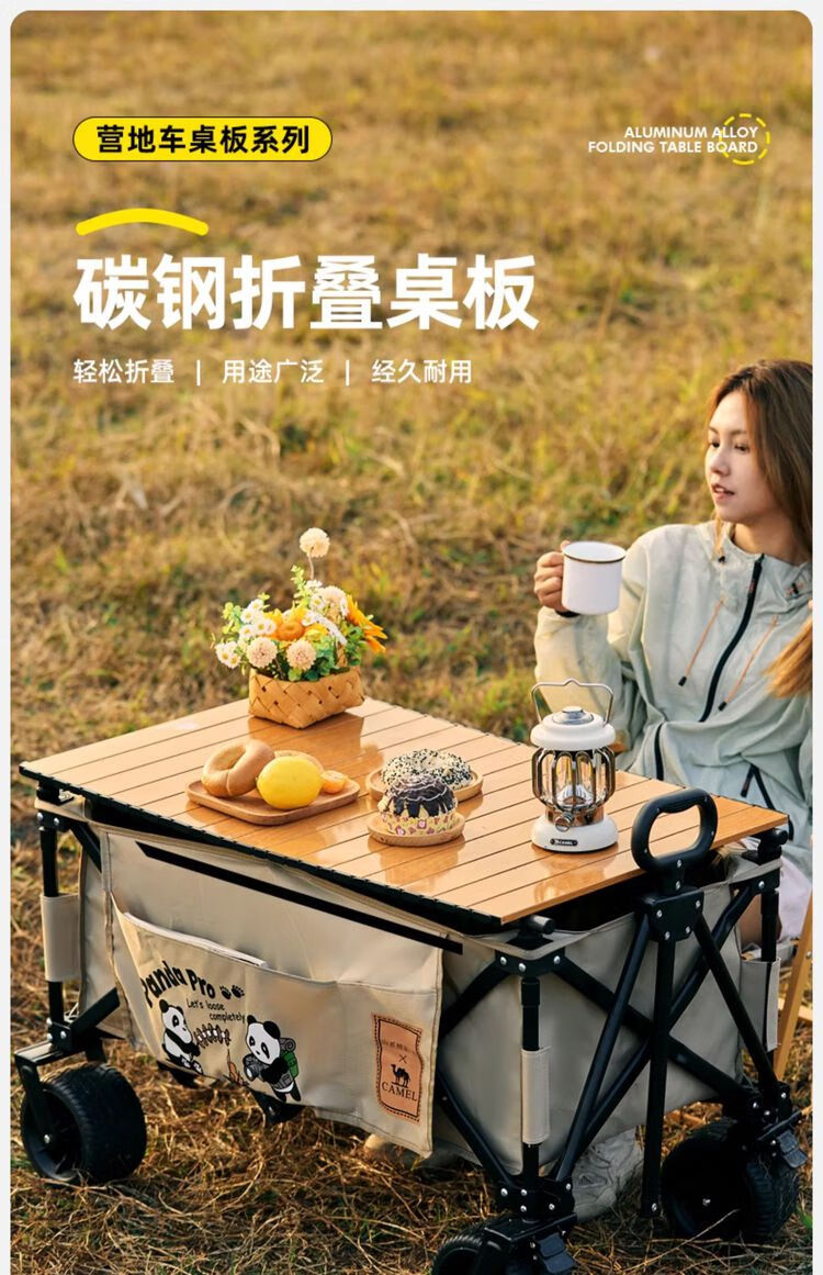 骆驼露营车折叠桌板户外露营置物板摆摊推车桌面碳钢高承重 木纹色 174BJ36623