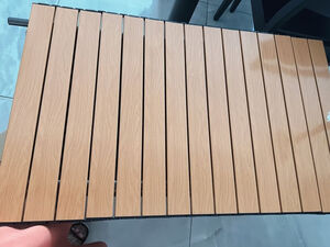 和露营车一起配套的,木纹材质很好,主要是收纳安装这些都很方便,卷起来装在袋子里不占位置,打开卡在露营车上很稳固,颜值也很高。