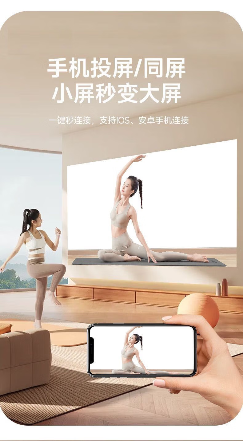投影仪家用家庭影院6K超高清投影办公卧室便携加幕布一体投影电视
