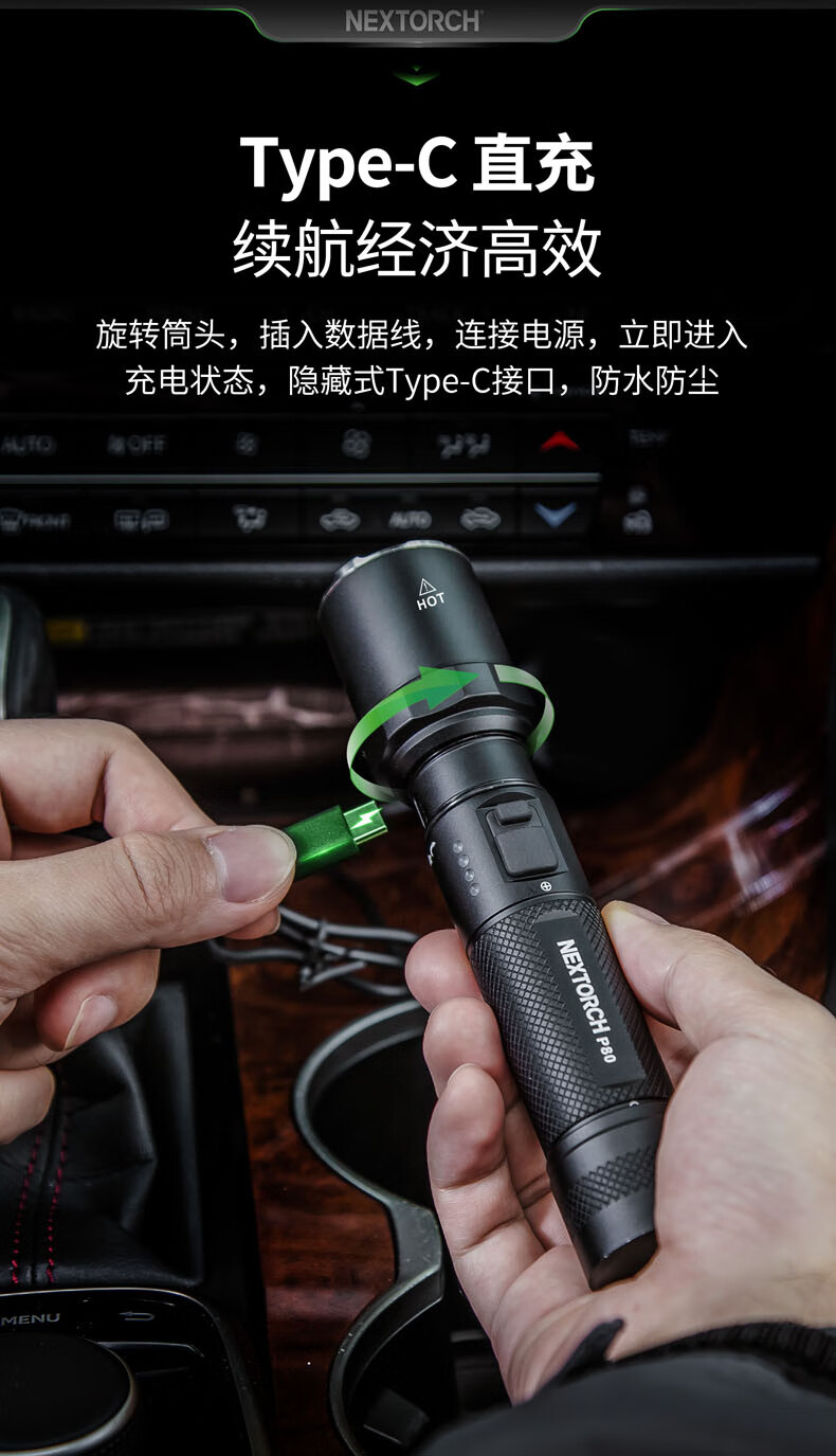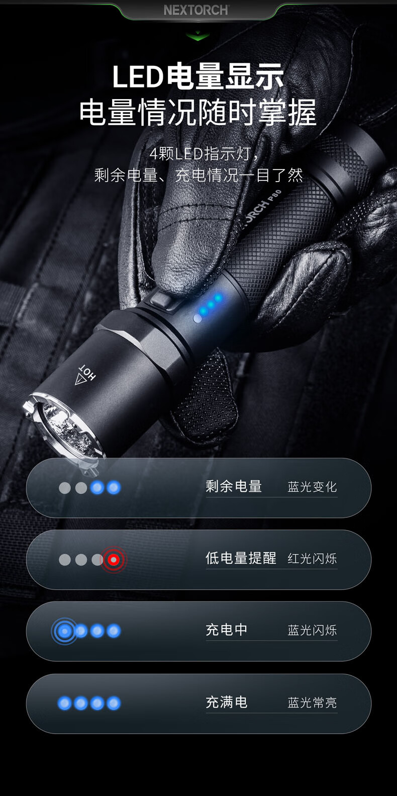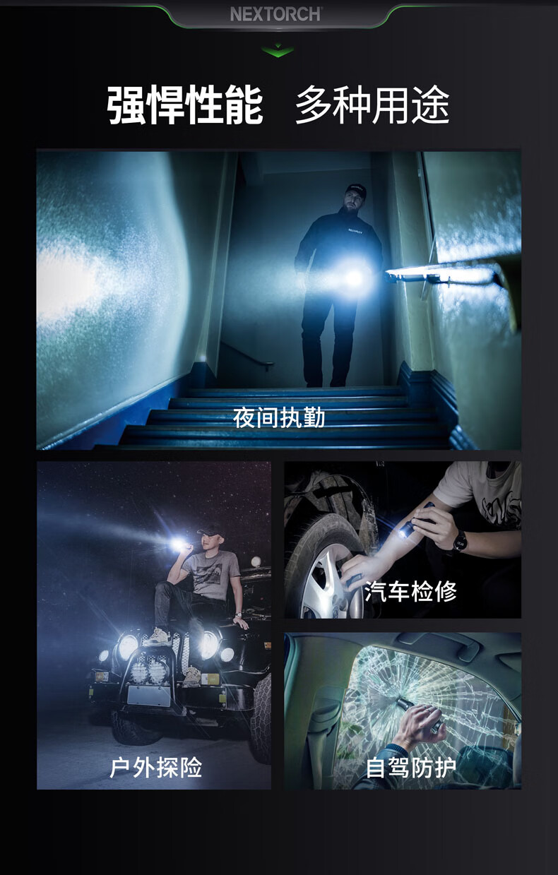 纳丽德(NEXTORCH)P80强光高亮手电筒家用应急便携手电长续航充电手电车载破窗防身 P80星辰粉-2100流明/380米远射