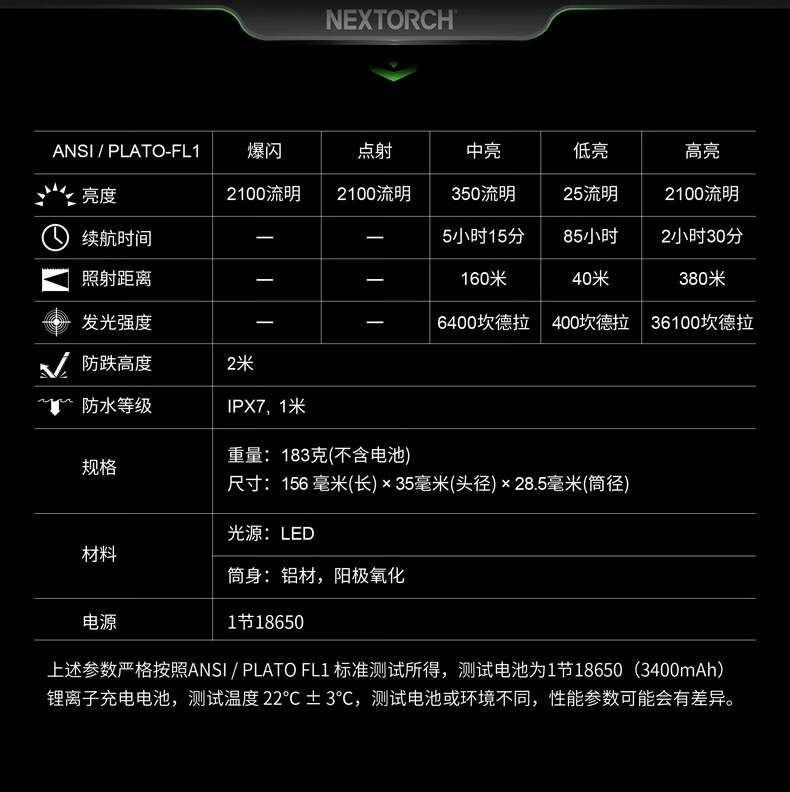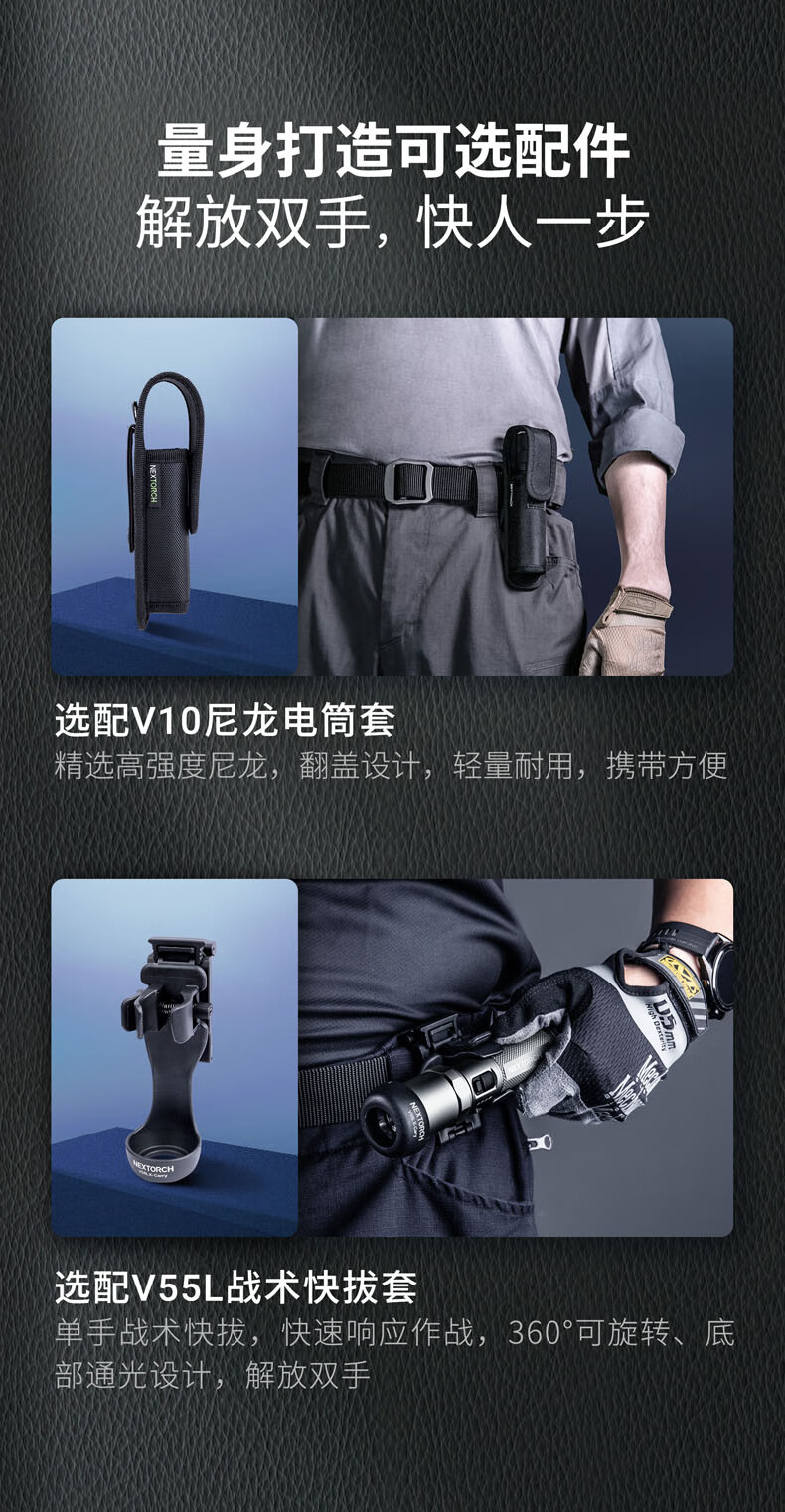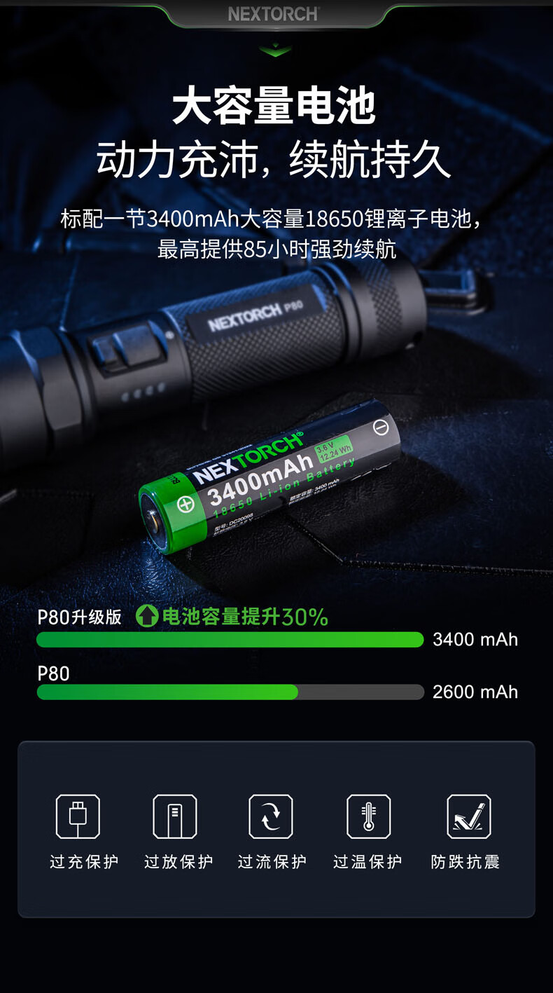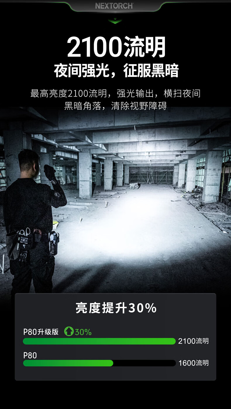 纳丽德纳丽德P80强光手电筒爆闪超亮远射充电防水战术破窗户外防身执勤