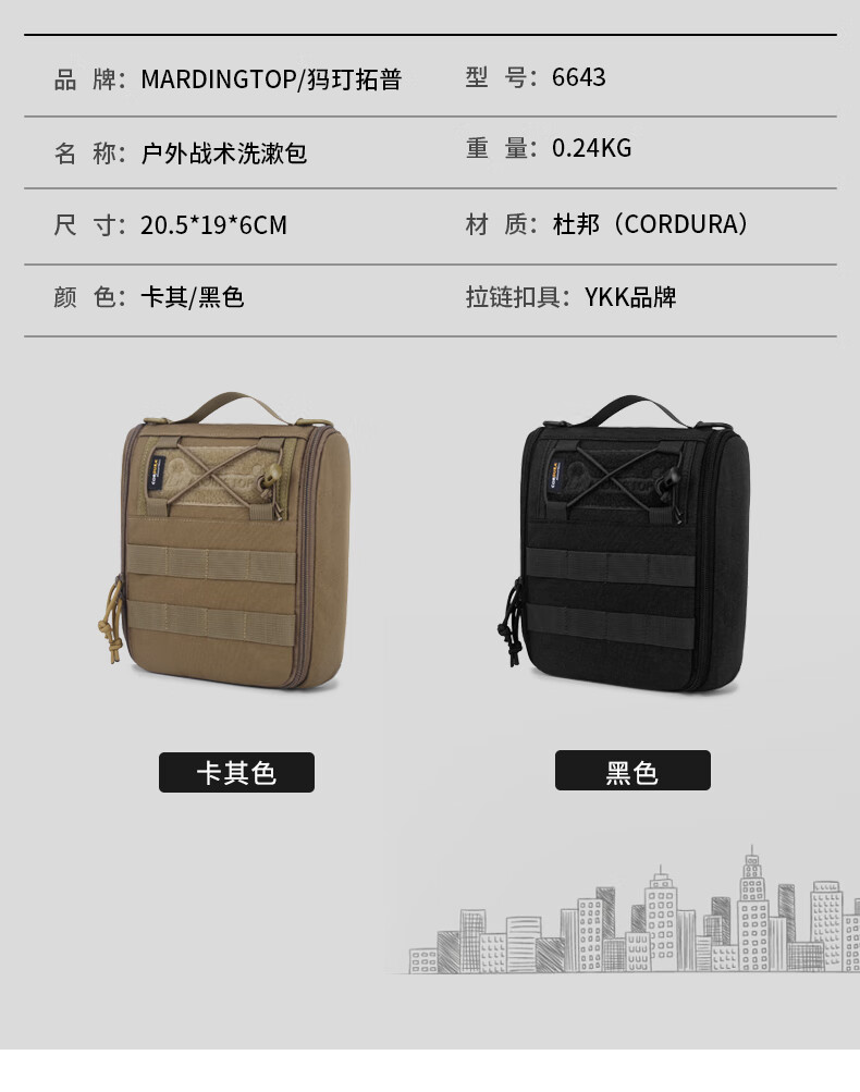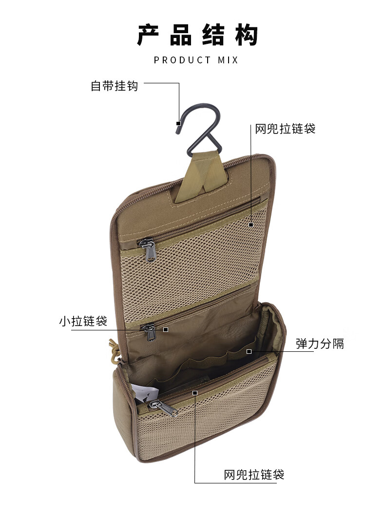 MARDINGTOP旅行洗漱包男士出差洗簌用品收纳袋户外多功能便携包 卡其色