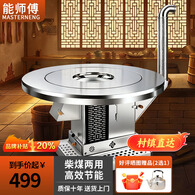 能师傅【送货上门】气化炉家用室内烤火炉柴煤两用节能无烟柴火炉灶农村 1.2米平转防爆玻璃桌面【6-8人】 气化炉