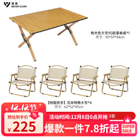 清系便携式露营桌子野餐可折叠克米特椅野营用品装备户外折叠桌蛋卷桌 桃木色大号90款+树脂扶手椅子*4