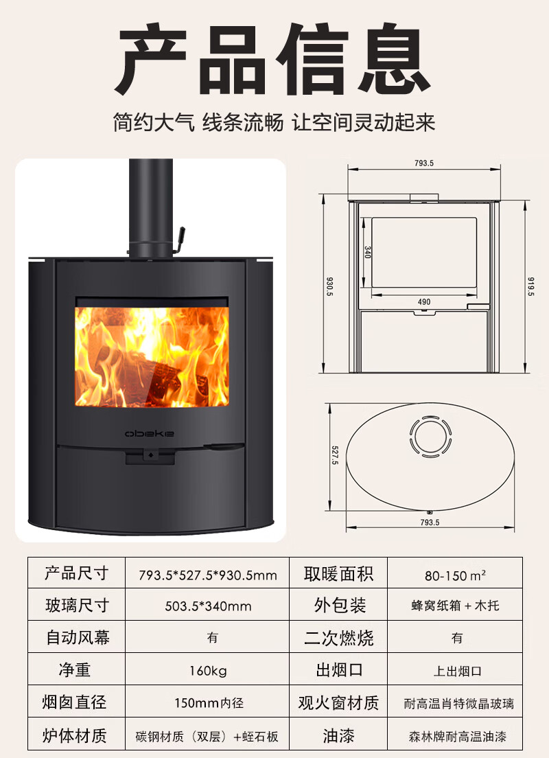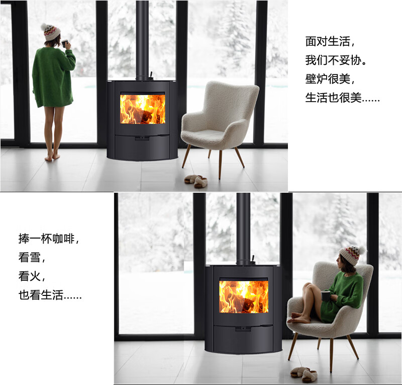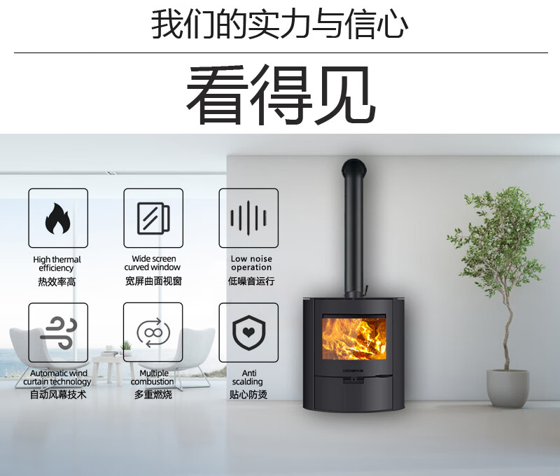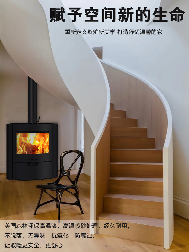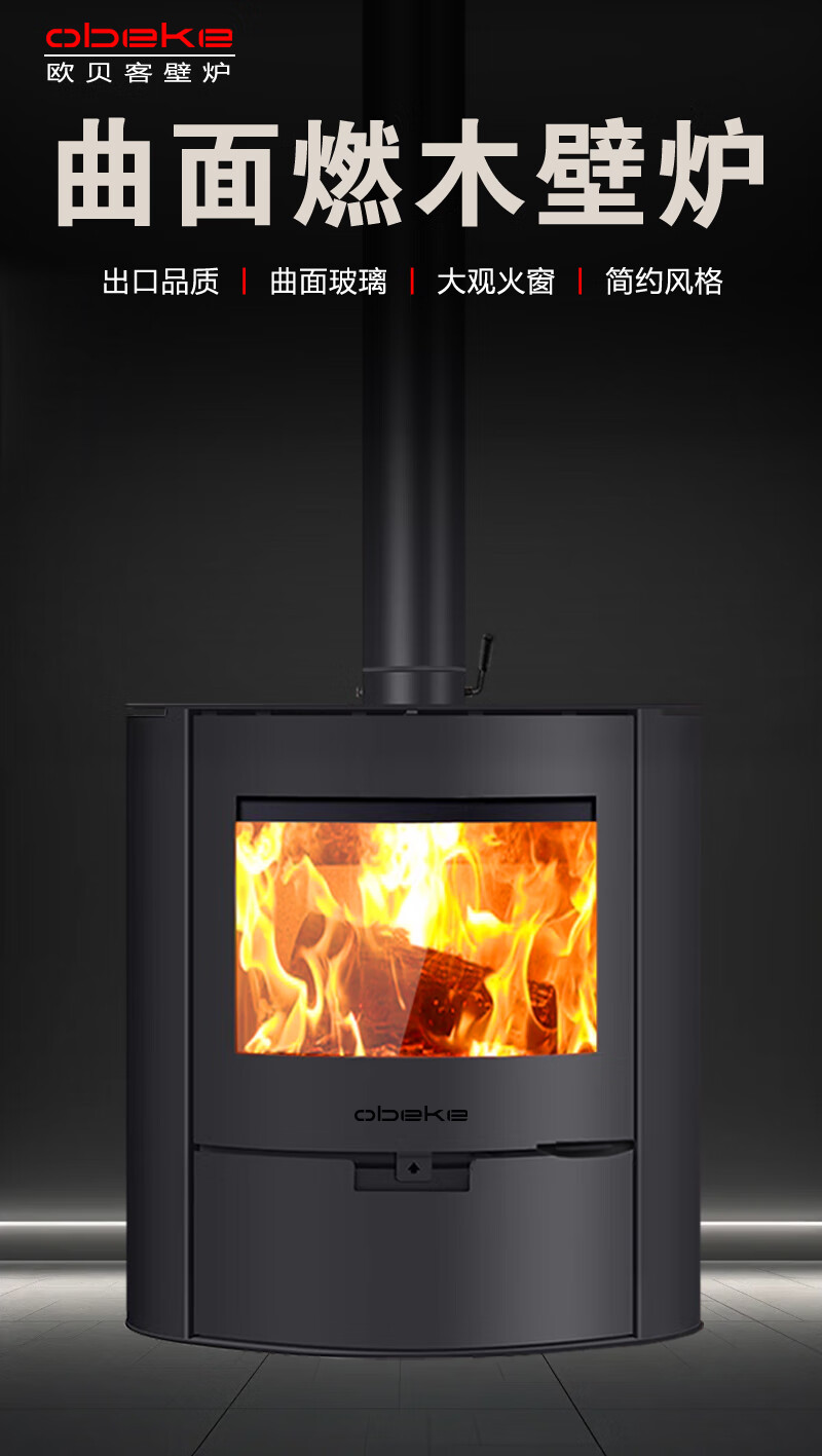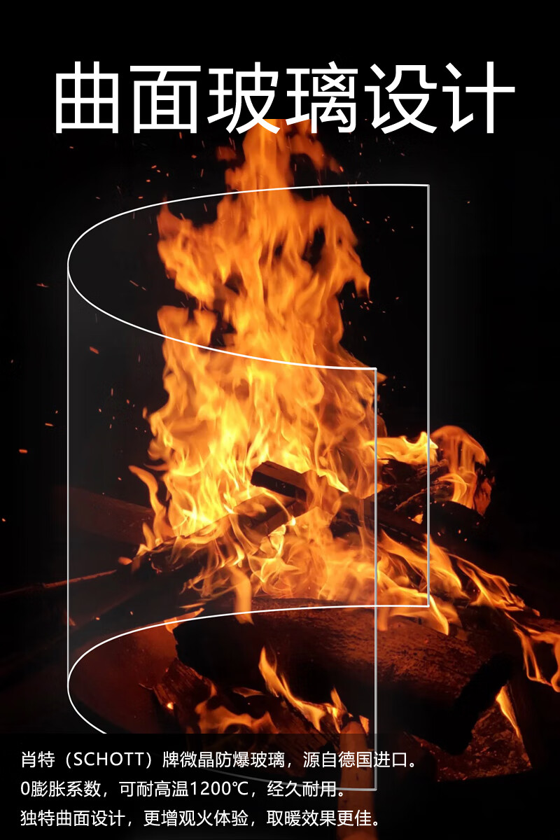 昊润通真火燃木曲面壁炉木柴取暖炉子别墅民宿家用客厅室内欧式椭圆壁炉 OBK010真火燃木曲面玻璃壁炉