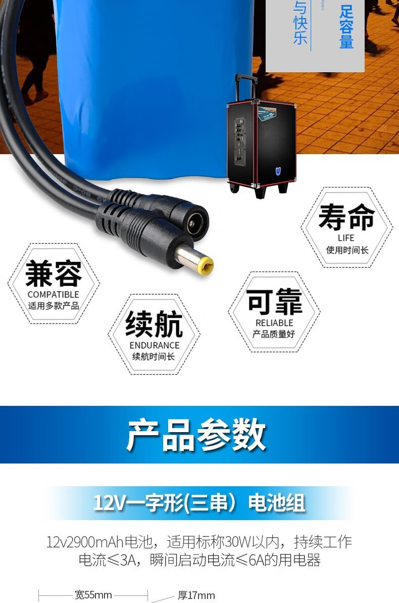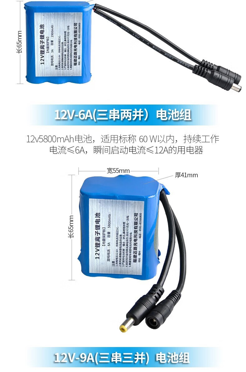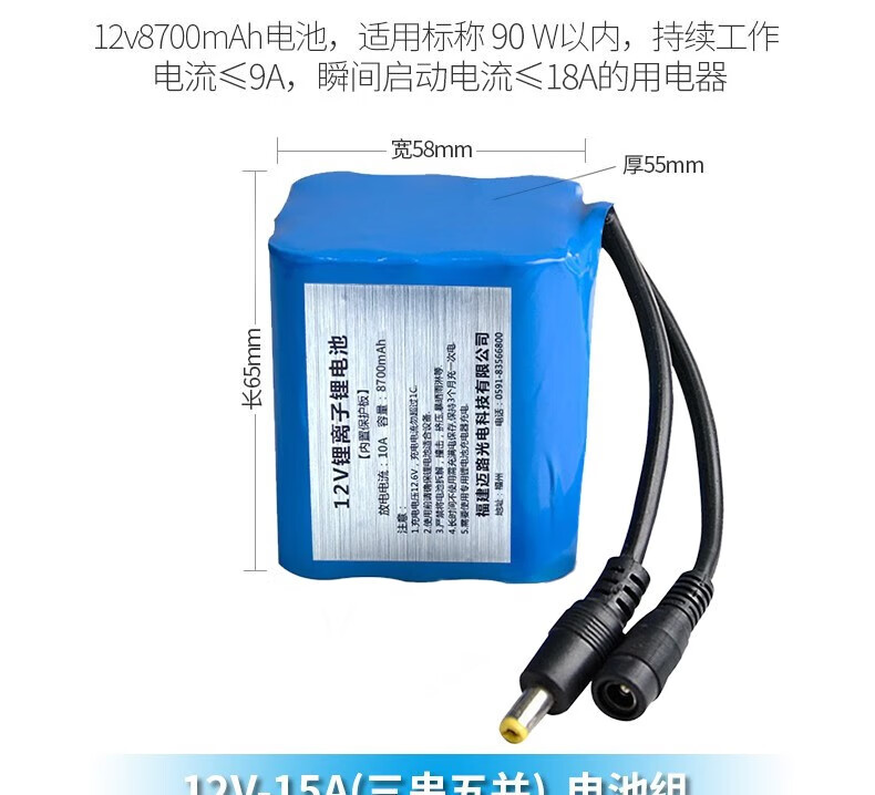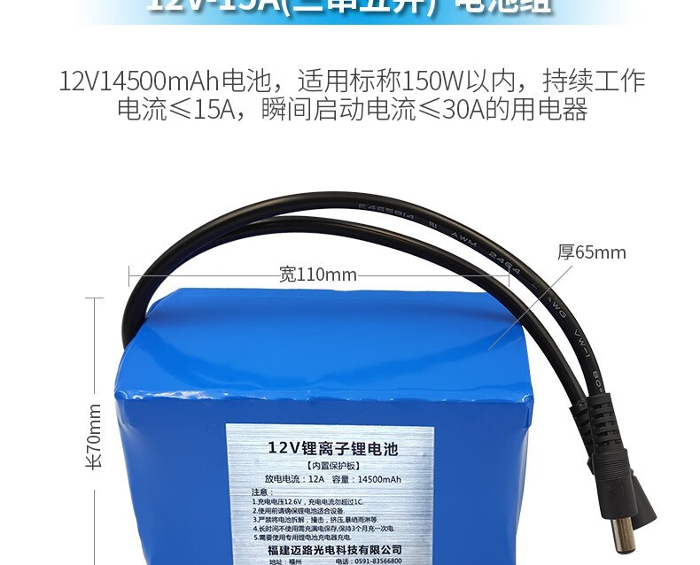 MAXLOAD12v锂电池组18650充电大容量111v伏通用移动电源户外便 12V3串5并14500mAh+直充