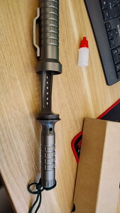 手感非常不错,重量适中,非常喜欢!鞘和柄都是铝材,但是刀刃没有看出来材质。货物与商家图片描述一致。