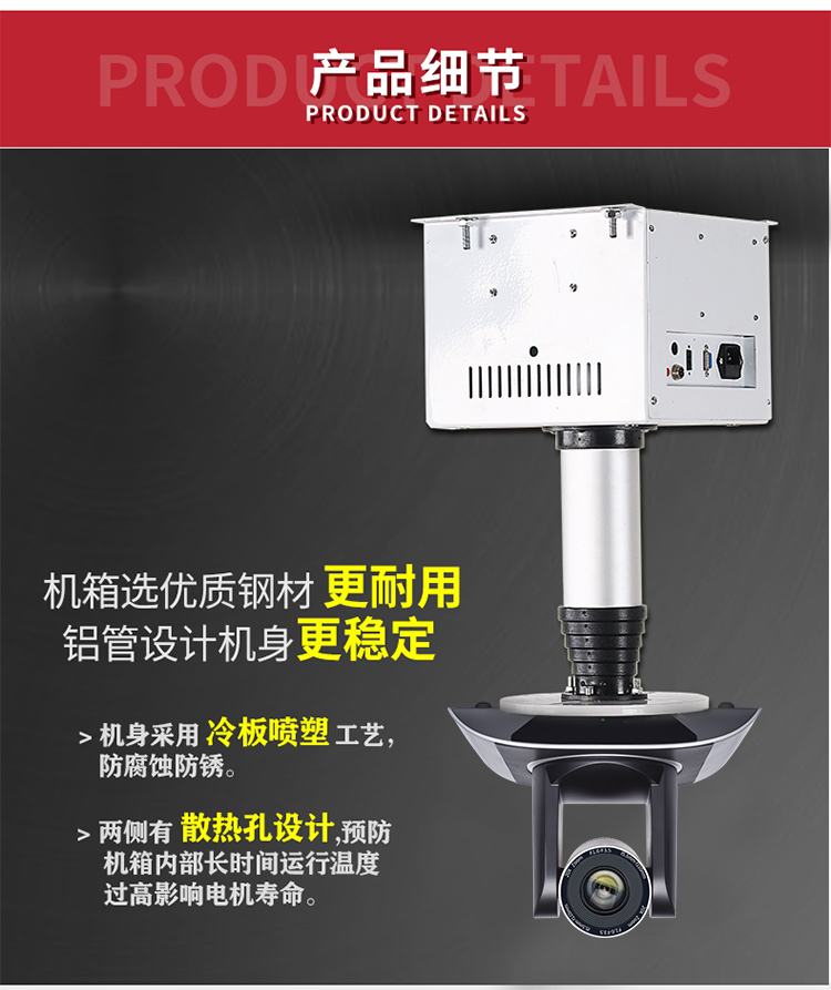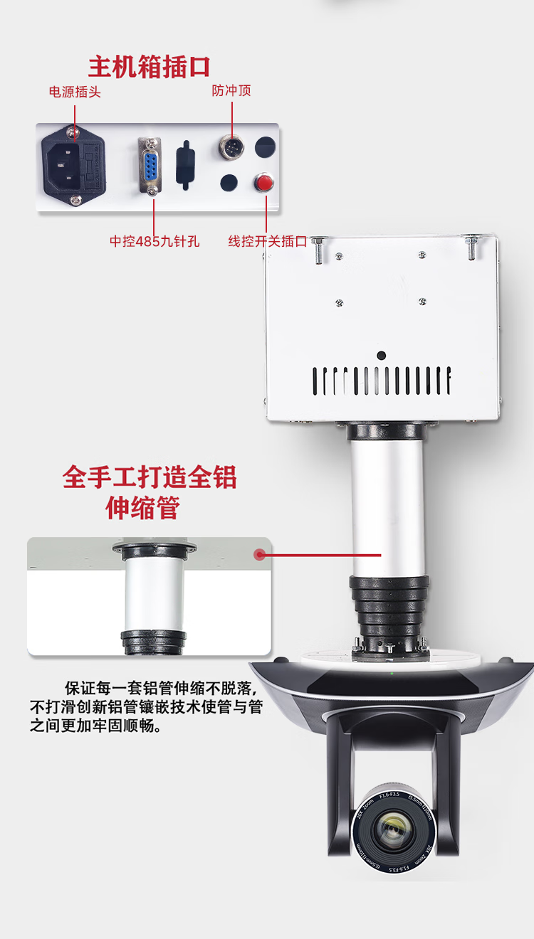 先视道专业投影仪摄像机立式电动吊架竹节式升降器管内走线升缩杆投影机摄像头多节升降柱中控控制承重25 摄像头托盘长40厘米*宽40厘米*高5厘米