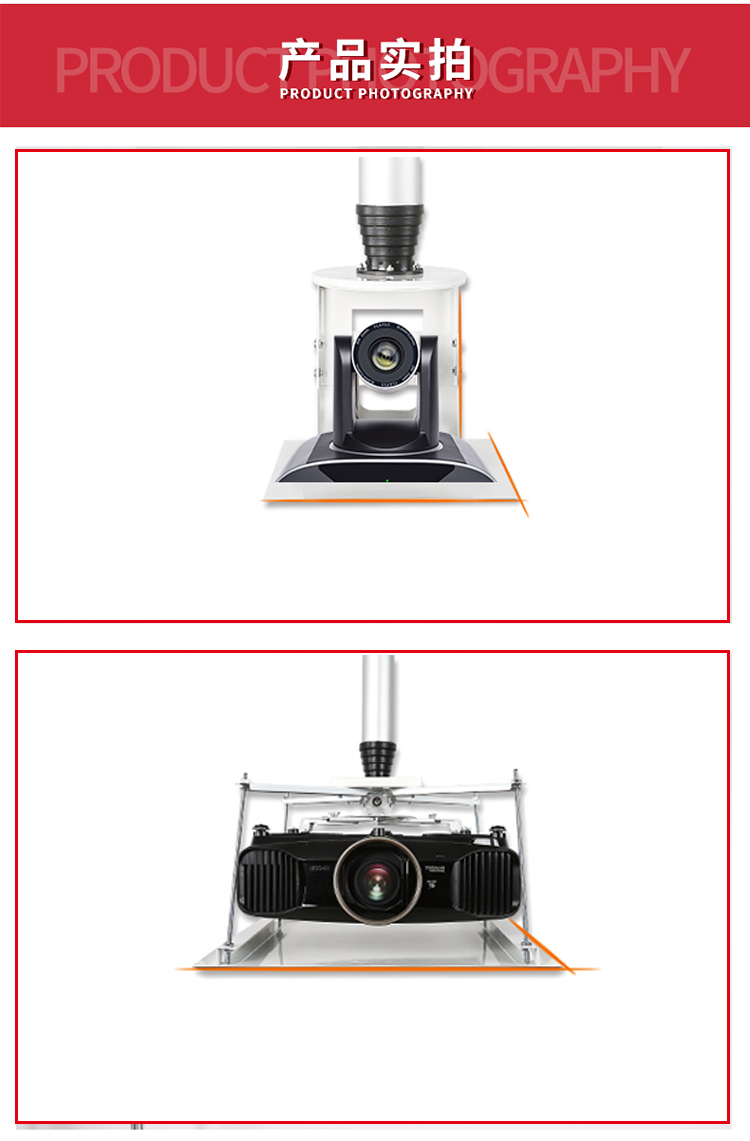 金视朝加厚投影机电动升降吊架竹节式遥控投影仪摄像头伸缩杆柱1-4吊顶伸缩支架 U”字型托盘300*300MM摄像头用