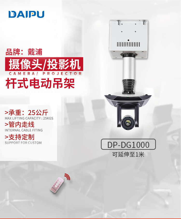戴浦(DAIPU) DP-DG1000 电动升降吊架杆式 视频会议摄像机摄像头投影仪吊架 升降仪器遥控支架行程1米