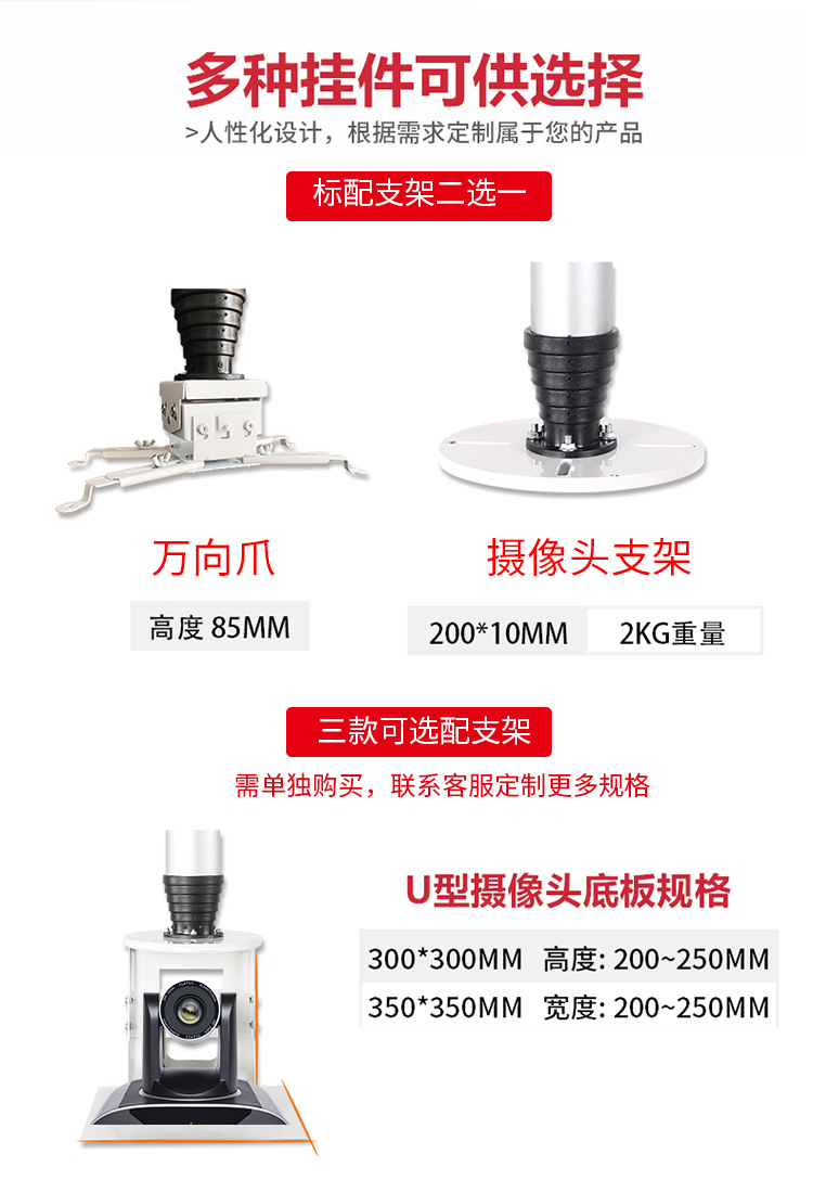 材料厚实,用来装视频会议摄像机吊装在天花板上,安装后不摇晃,升降轻松搞定。