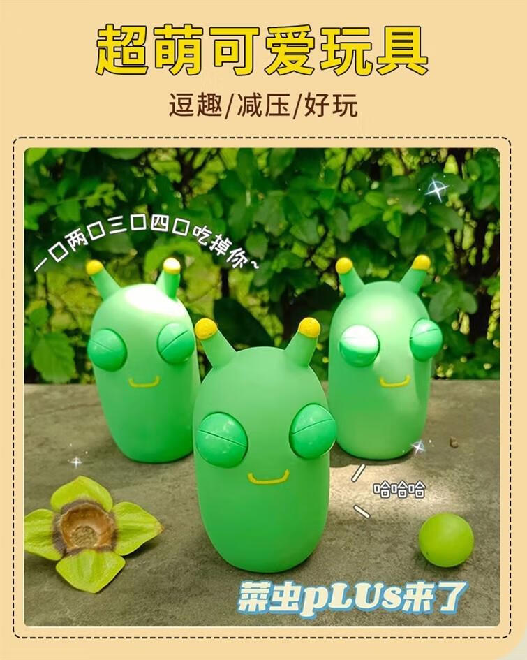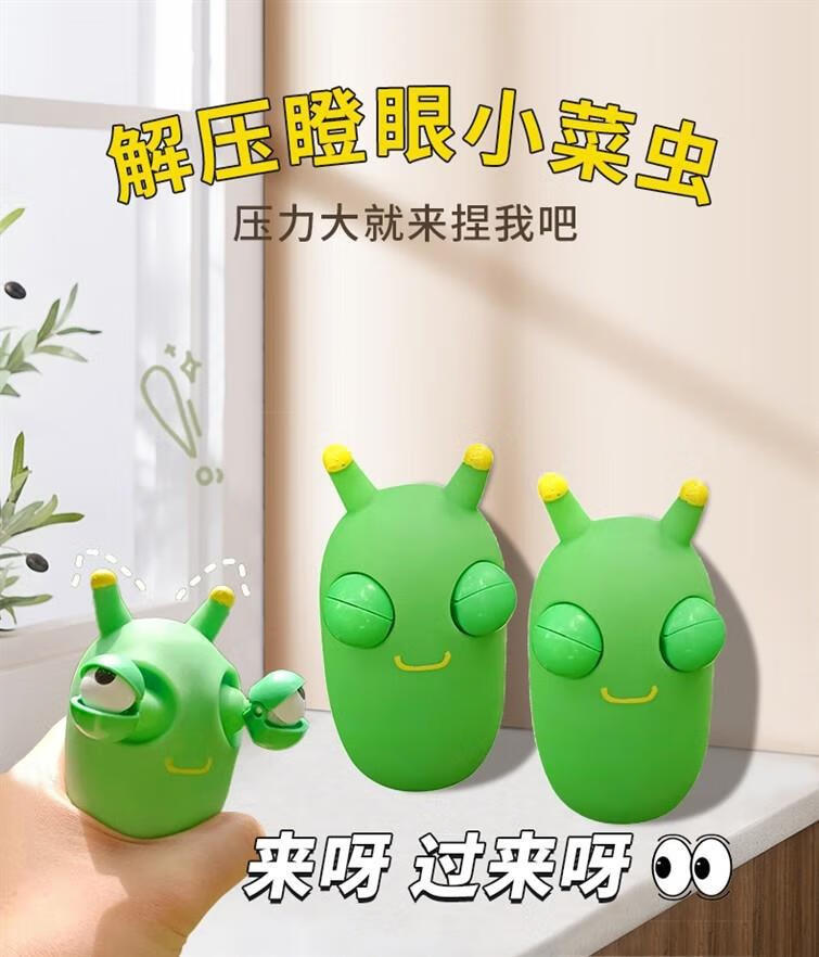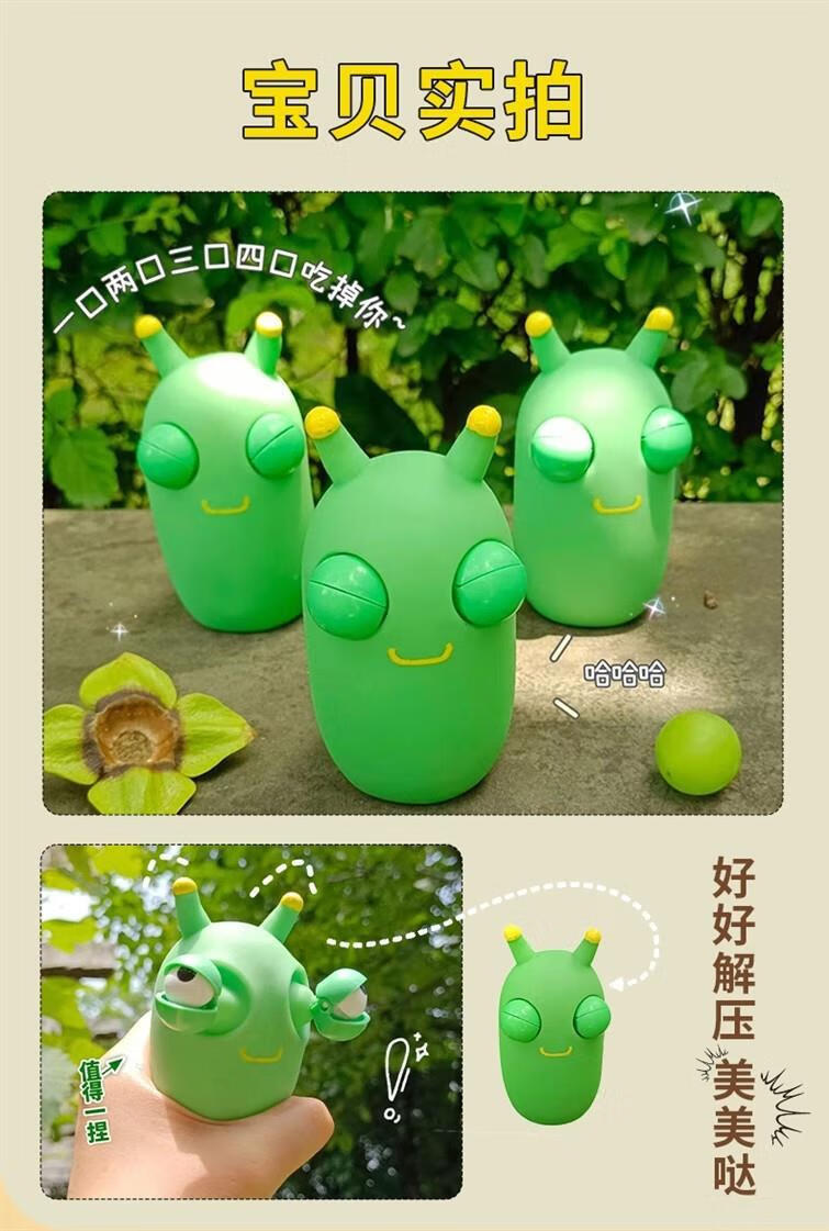 旅行装备爆眼小虫子解压捏捏乐创意发泄瞪眼搞怪菜虫户外装备 瞪眼菜虫3只