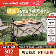 Naturehike挪客轻盈户外露营车折叠推车野餐营地车自驾游拉货快递拖车摆地摊 185L 有刹车 /亚麻棕/不含桌板
