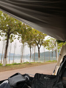 帐篷黑胶的 防晒效果特别好 四周蚊帐边缘很窄 视野好通风效果好