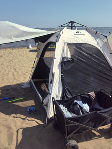 在营地试用了,方便安装和收纳,质量不错,密封性好。我把所有拉链都拉紧后,形成气球状,说明密封很好。收纳时要注意不能完全拉紧,要留一个小口,以便放气。
