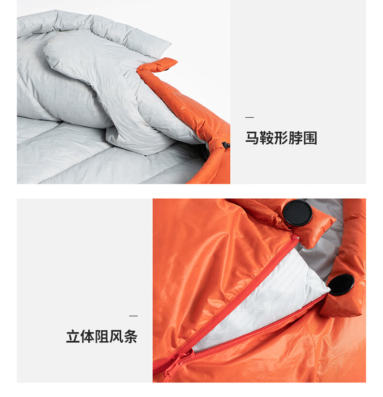 黑冰新款B系列B700/B1000木乃伊式鸭绒睡袋户外成人防寒保暖羽绒睡袋 B200蓝色M号(舒适温标18度)