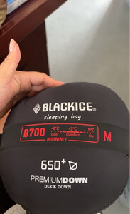 首先是黑冰正品,其次睡着很暖和,这次去了亚丁(大转山)睡袋里面+了内胆 扛过了零下15度,不错,好评,当时没买1000是因为B700相对好收纳,重量也合适,店家老板人很好。
