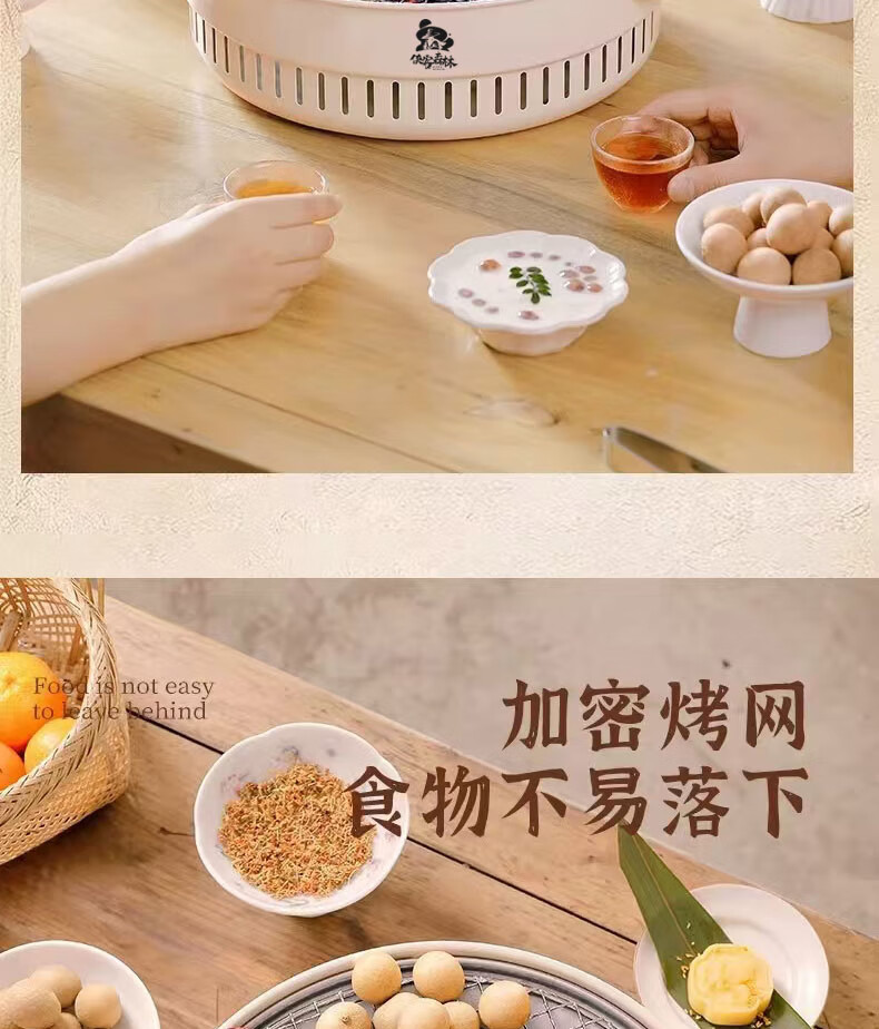 侠客森林【XIA KE SEN LIN】围炉煮茶烤火炉户外室内烤火盆碳烤炉取暖家用 碳围炉【加密烤网+带接油槽】