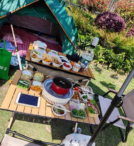 梦多福 户外桌椅 户外折叠桌椅套装便携式蛋卷桌野餐烧烤露营桌椅装备 1.2米7件套【米色加长桌+6把椅子】 新升级款