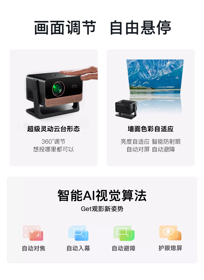 AUBOX投影仪家用家庭影院8K超高清白天直投办公会议教学培训卧室小型宿舍投影机一体机手机投屏民宿 4K高清智能语音云台高配版本店主推荐购买