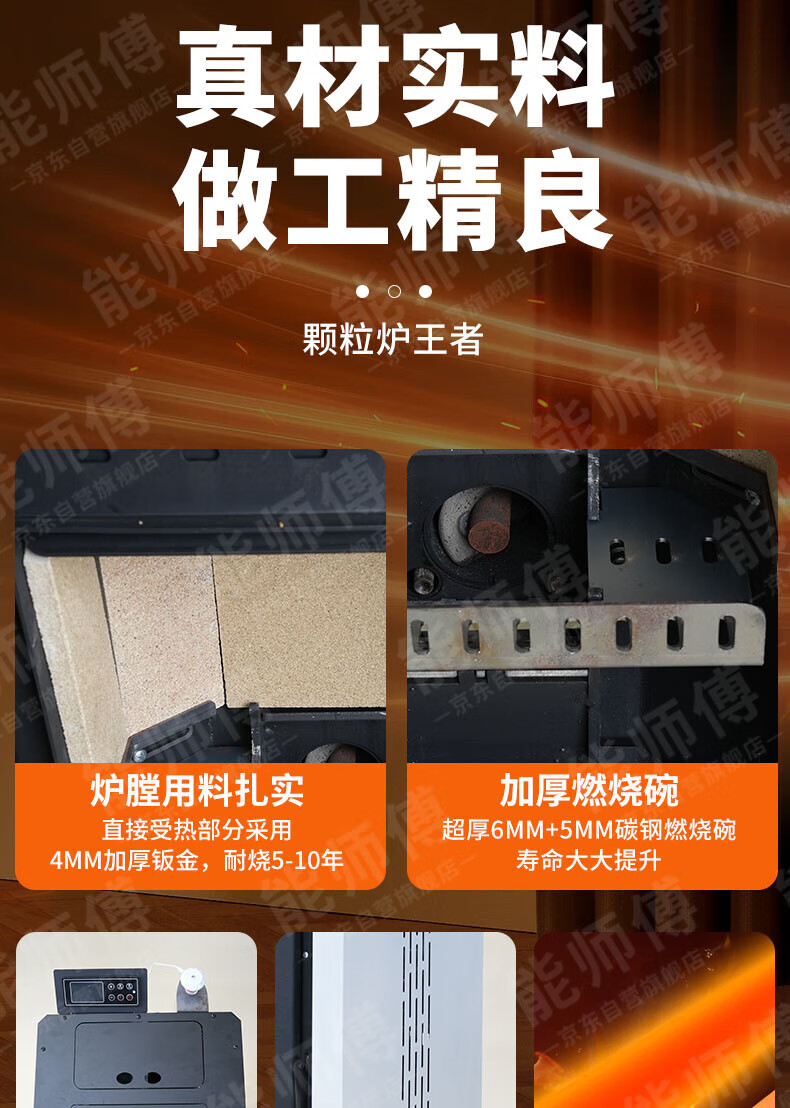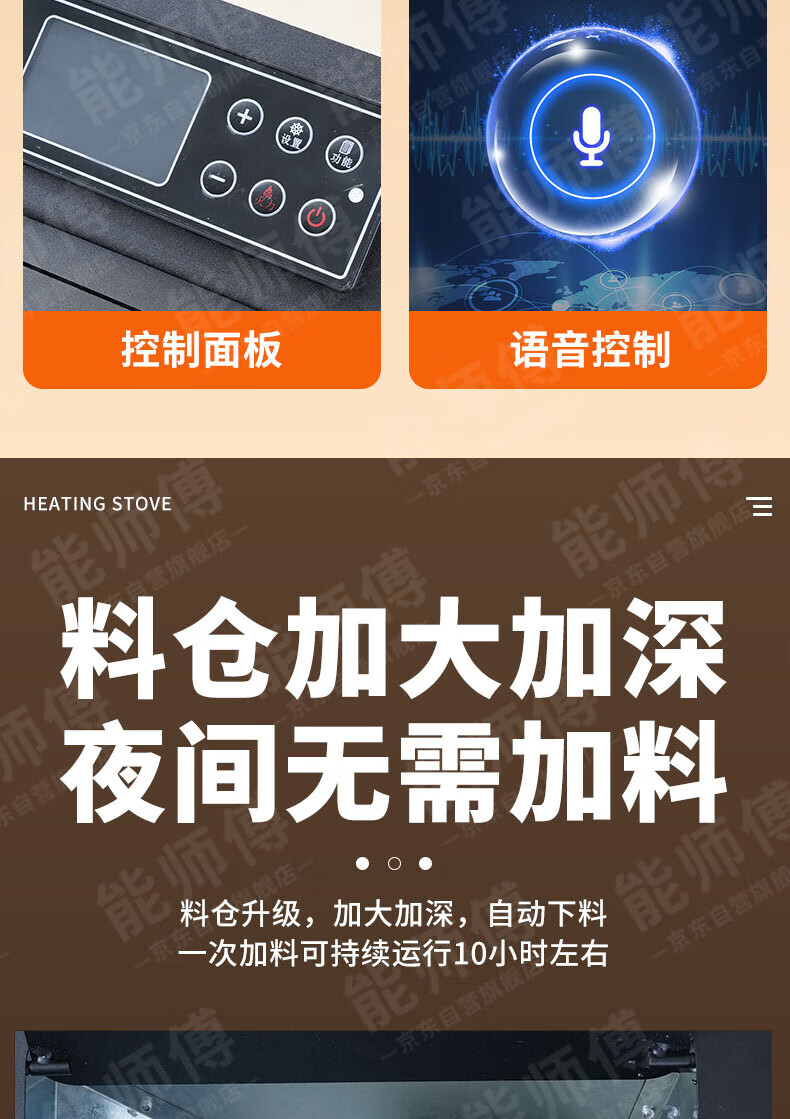 能师傅颗粒取暖炉全自动生物质燃料风暖节能环保自动除焦野餐(送货上门) 语音控制加送加湿器/手机APP控制