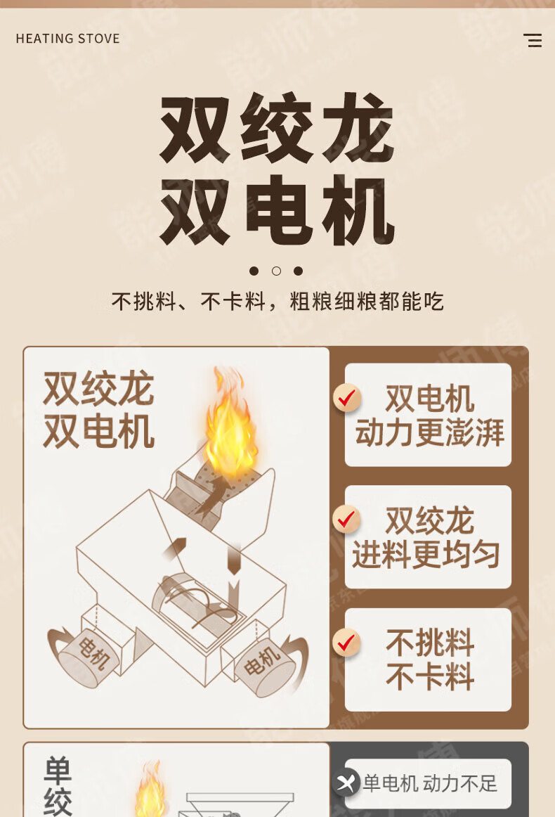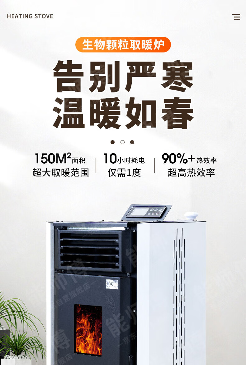 新型生物颗粒取暖炉木柴颗粒两用采暖炉节能环保家用商用无烟取暖 颗粒炉配件下单前请咨询客服