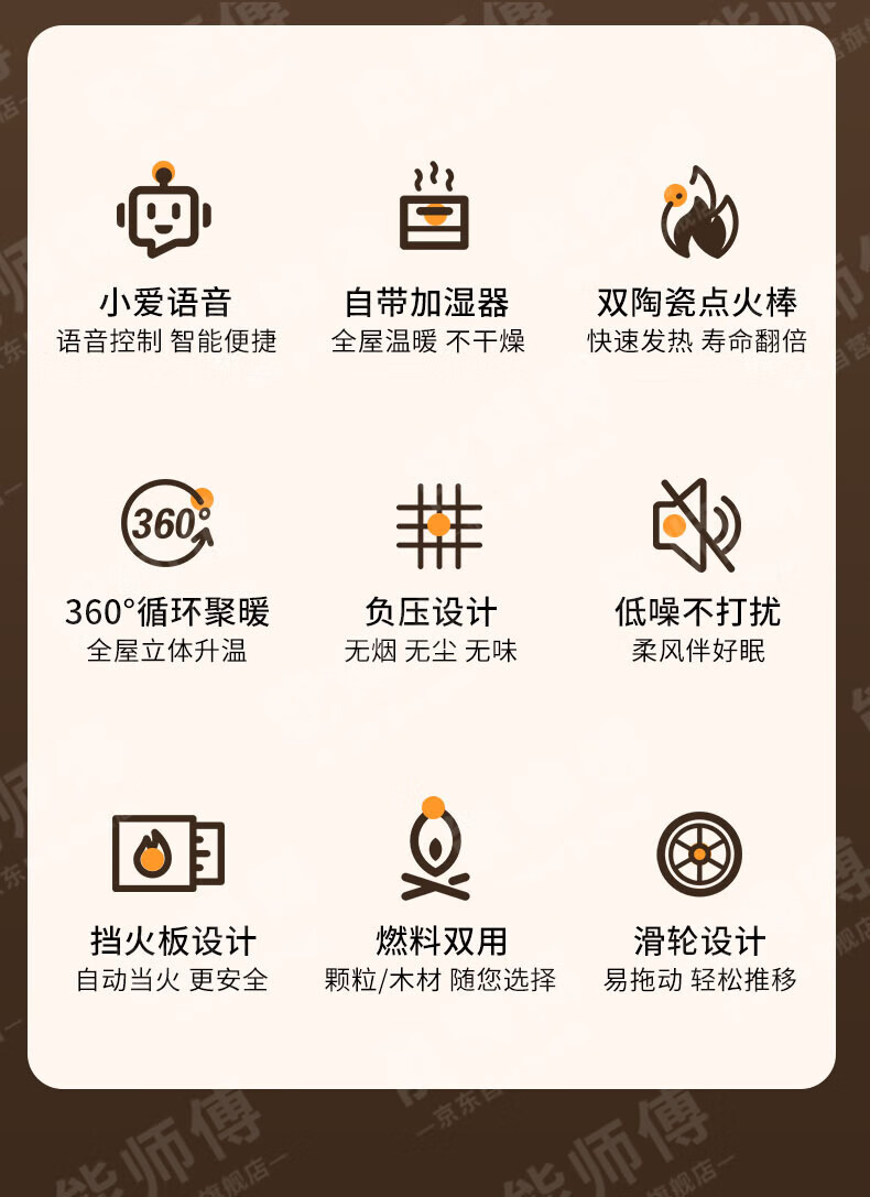 能师傅颗粒取暖炉自动除焦风暖节能环保全自动生物质燃料野餐(送货上门) 语音控制加送加湿器/手机APP控制