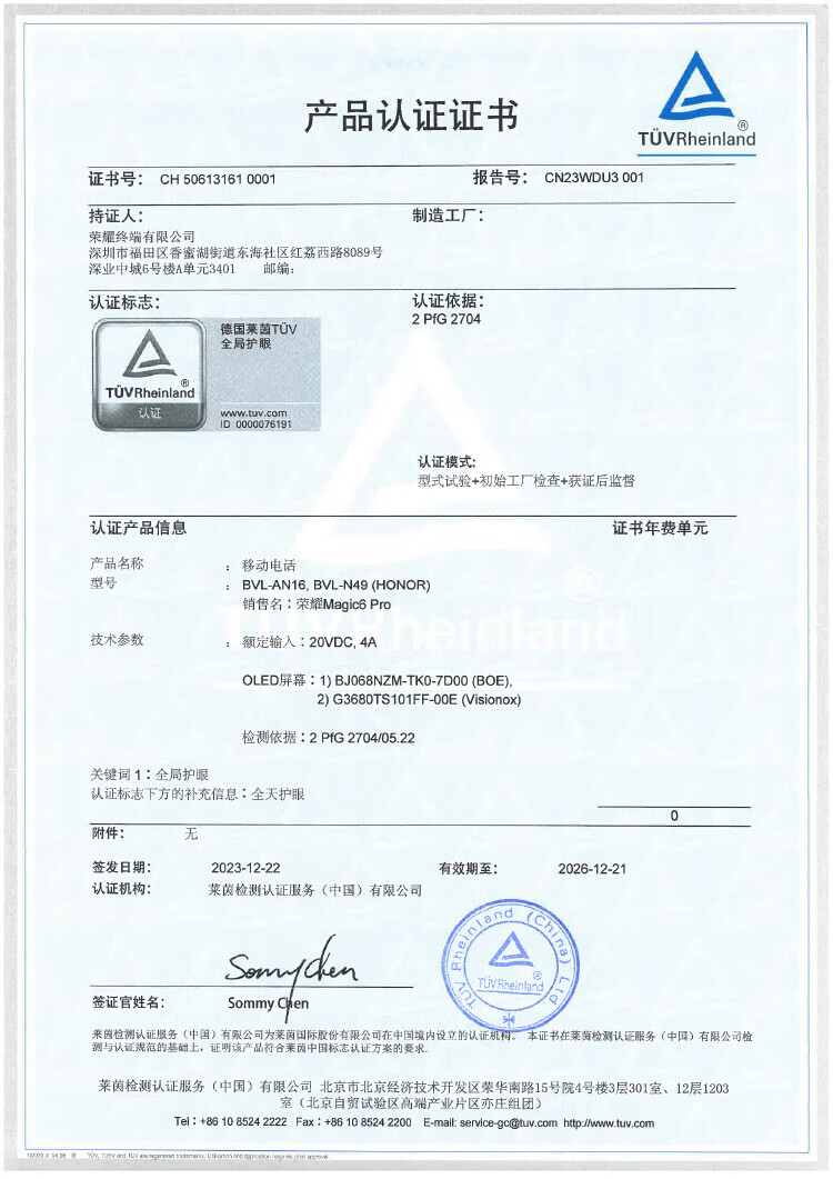高频PWM调光;SGS认证;LTPO屏幕;德国莱茵护眼;巨犀玻璃