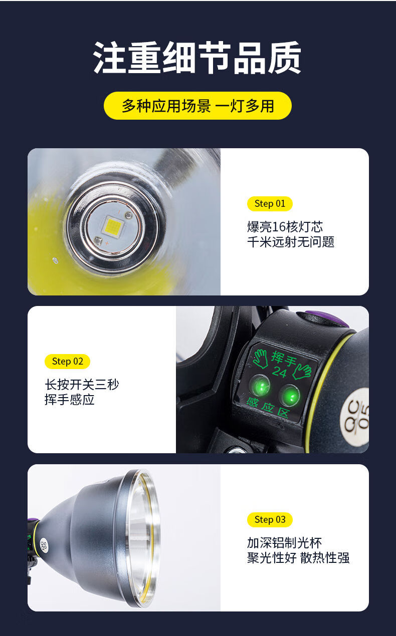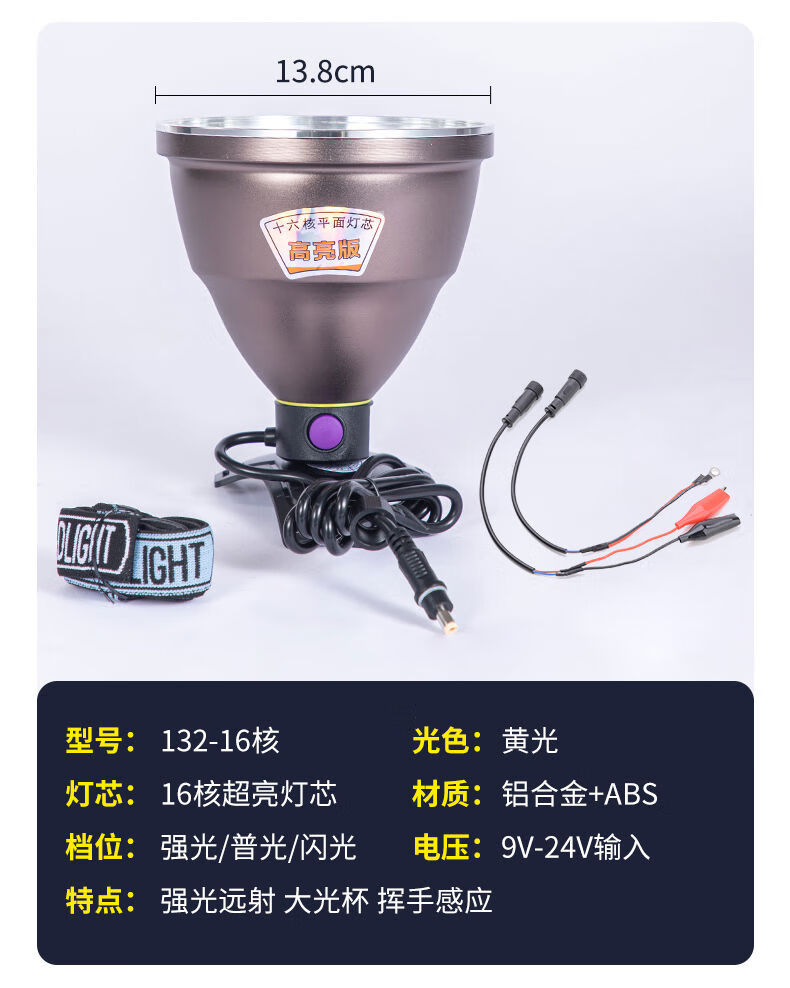 36核灯头超亮强光远射16核大功率12V外接电瓶头戴式激光炮超疝气 16爆亮远射大光斑穿透力好