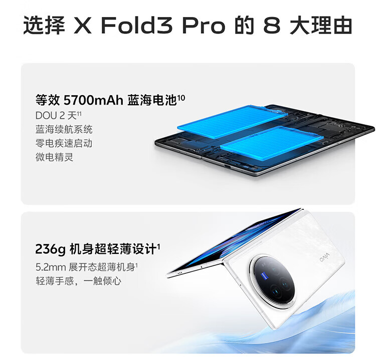 vivo X Fold3 Pro 通5G手机 5700mAh蓝海电池 超可靠铠羽架构 第三代骁龙8 折叠屏 双屏幕指纹识别 轻羽白 16GB+1TB