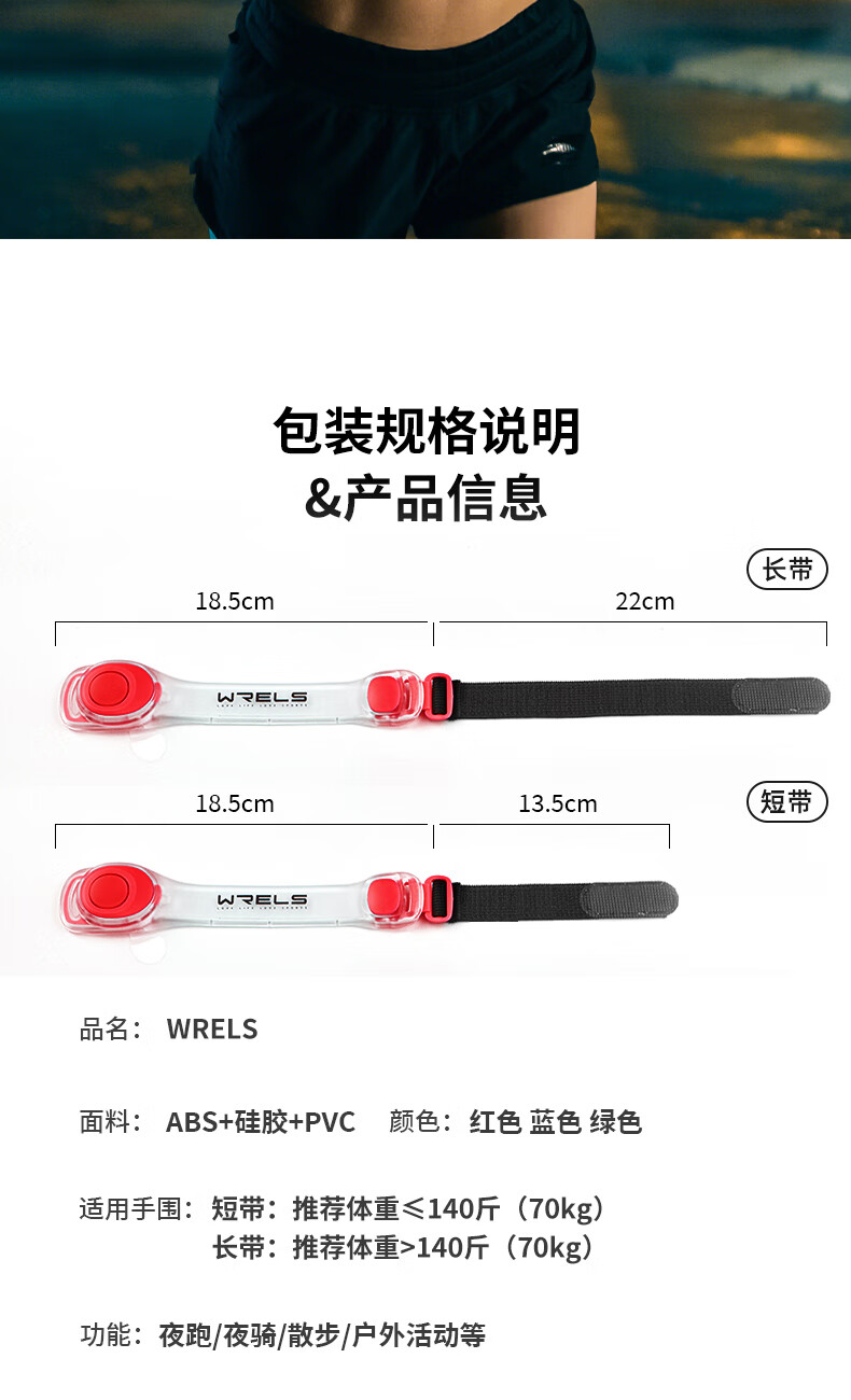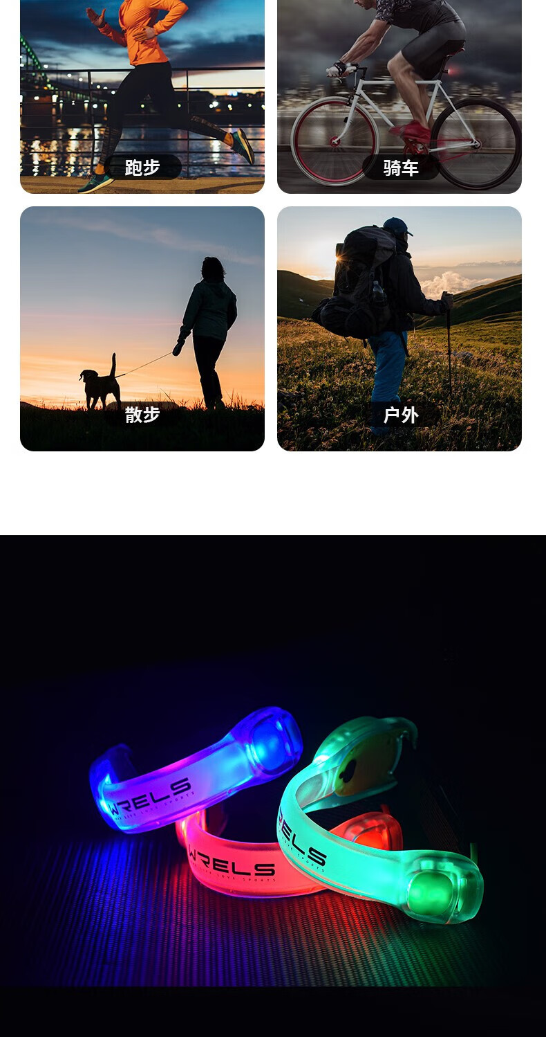 瑞尔士夜跑发光手臂带led运动手环骑行安全灯绑腿束裤带警示跑步手臂灯 升级彩色变光(充电款) 大码(推荐体重140斤以上)