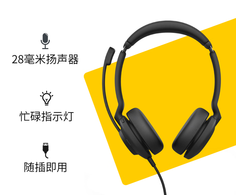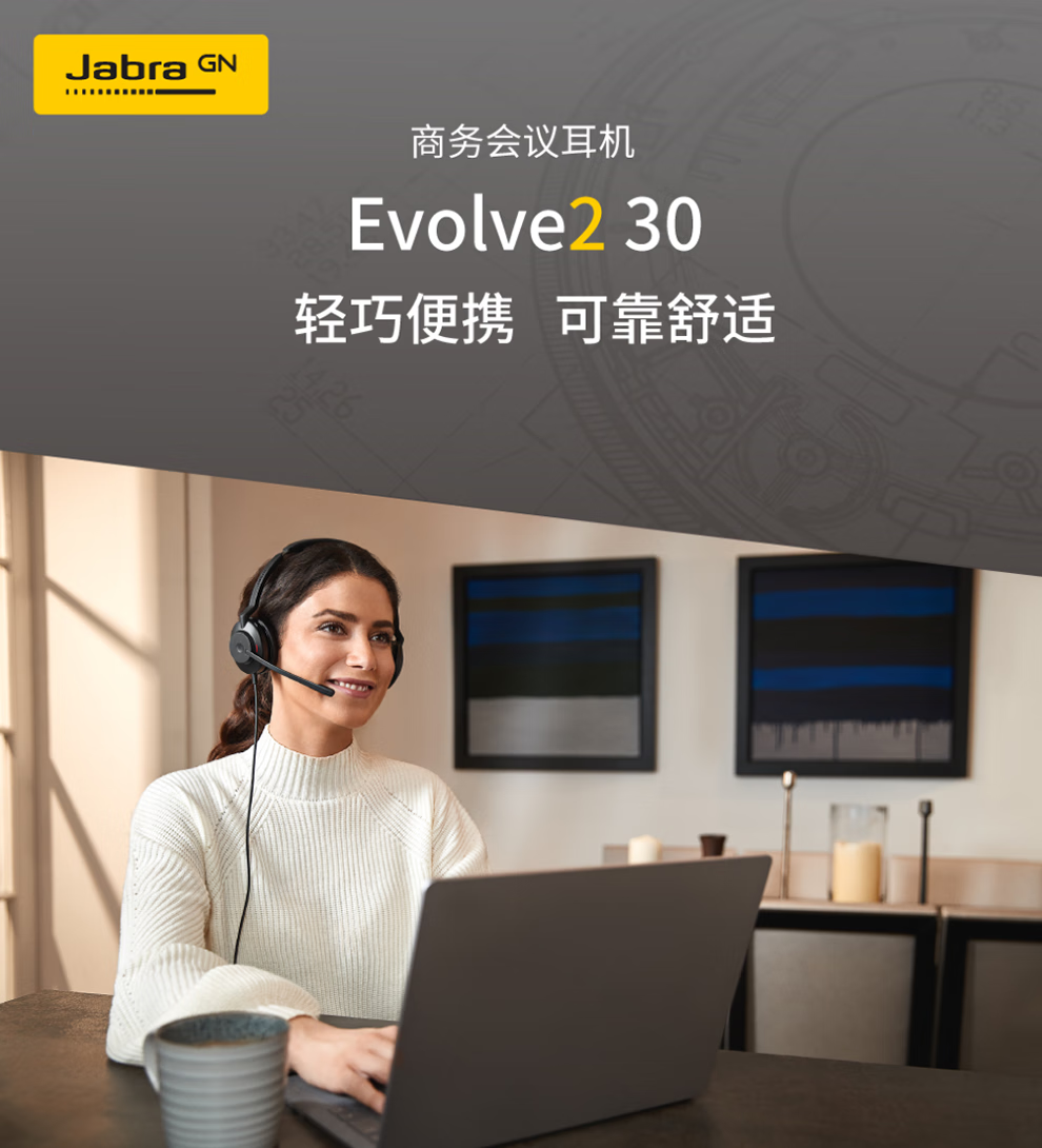 捷波朗Jabra Evolve2 30新款呼叫中心话务员头戴式电销外呼客服坐席会议办公USB电脑电话耳机耳麦舒适 Evolve2 30双耳UC-A