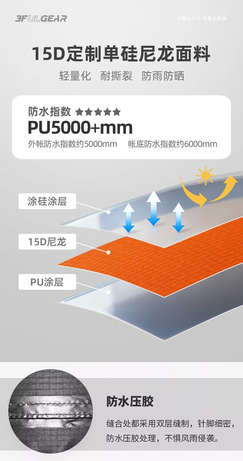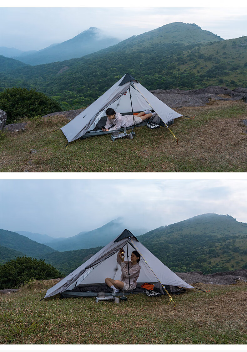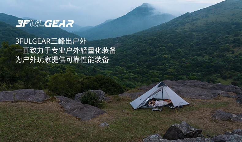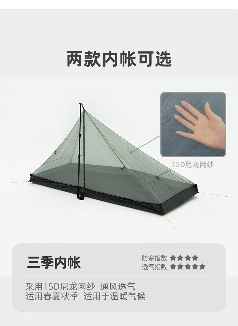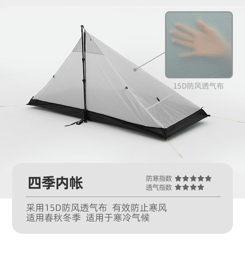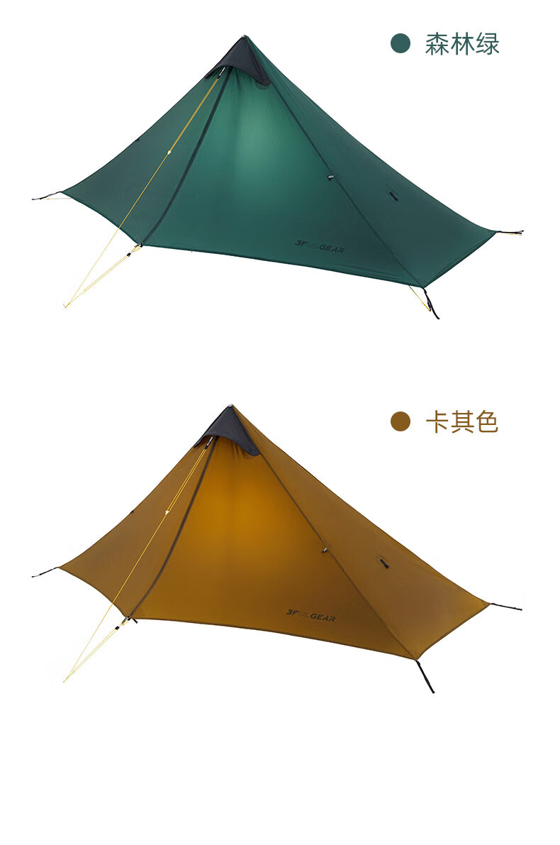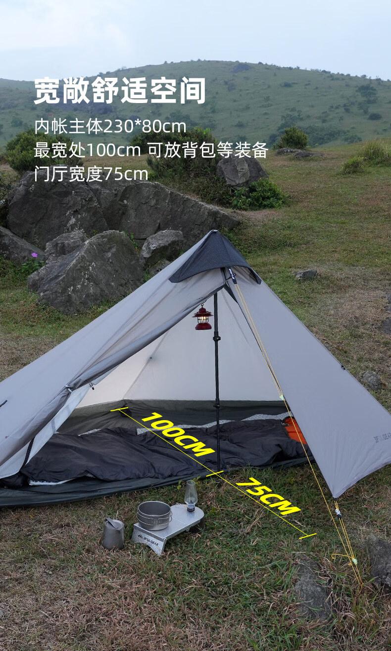 三峰出户外帐篷防风防暴雨轻涂硅蓝山1单人徒步露营无杆金字塔帐 森林绿三季【不含地布】