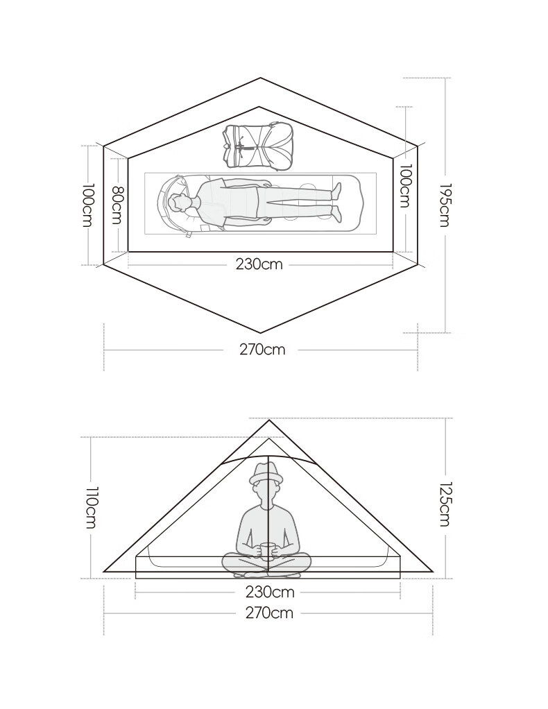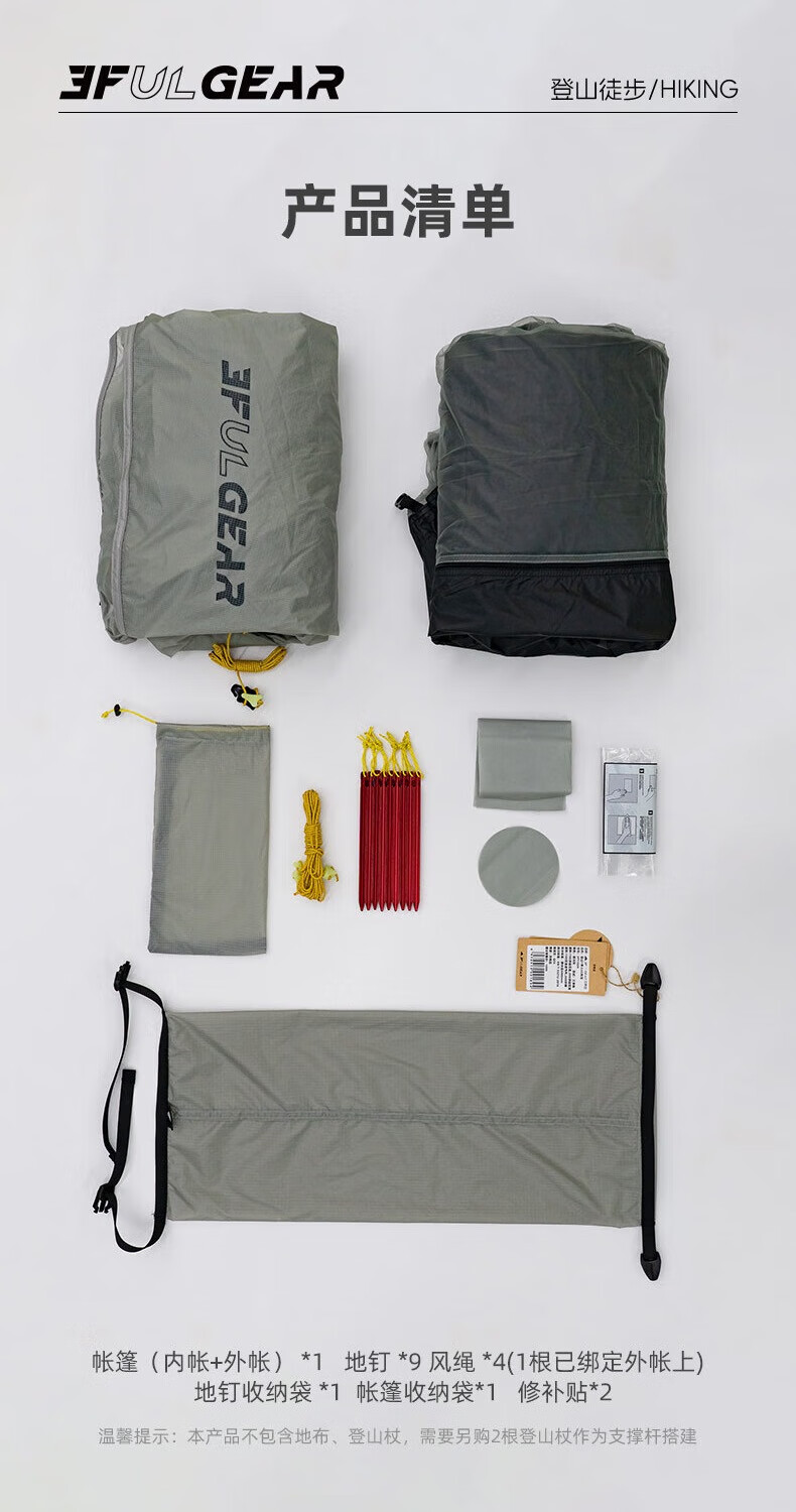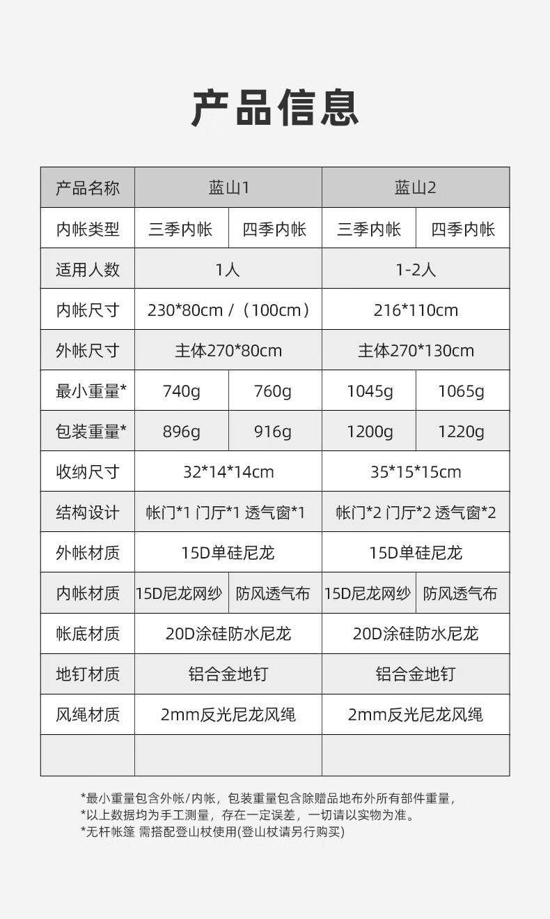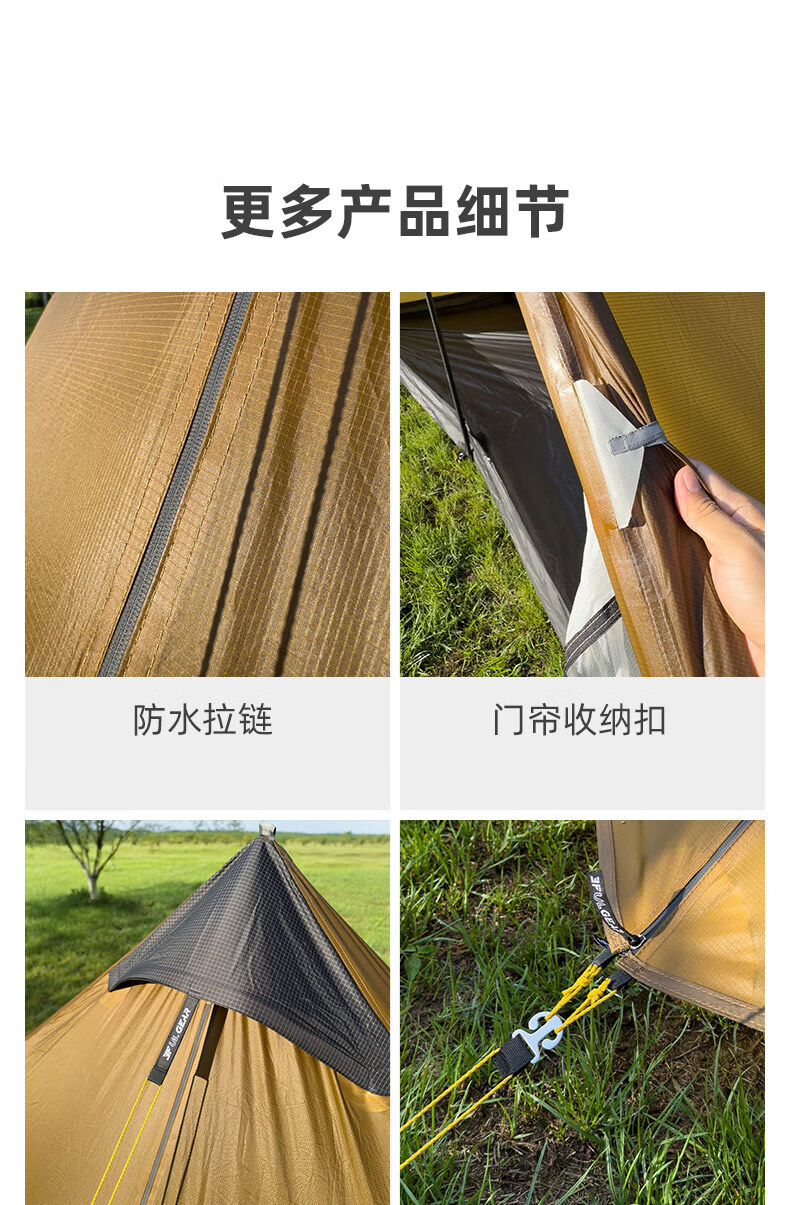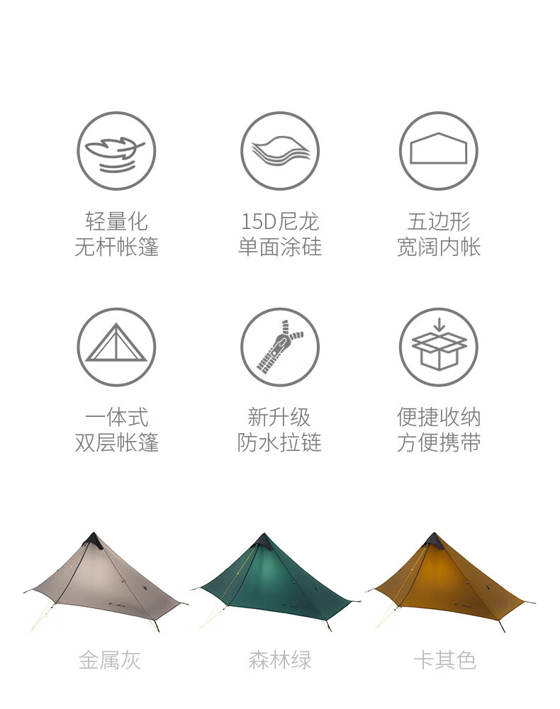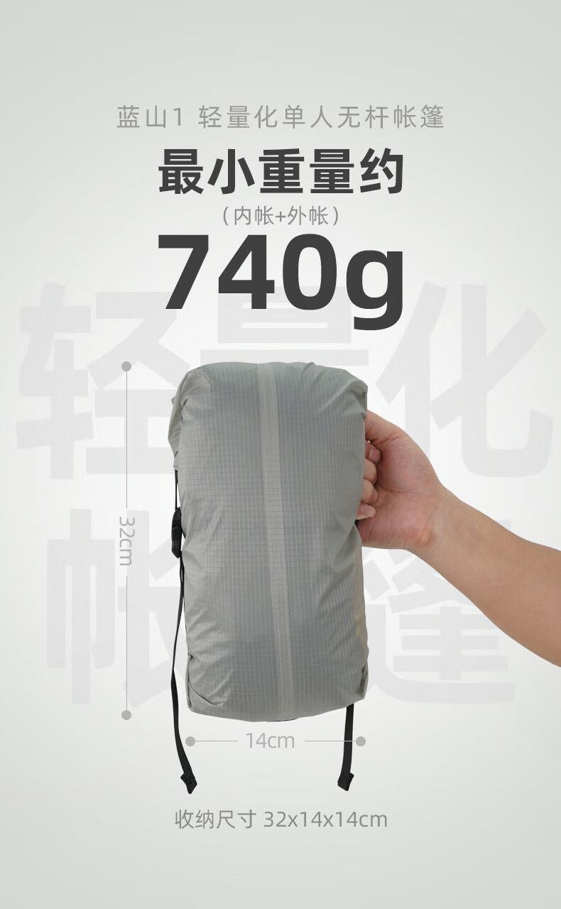 三峰出户外帐篷防风防暴雨轻涂硅蓝山1单人徒步露营无杆金字塔帐 森林绿三季【不含地布】