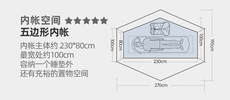 山脊户外露营装备DIY六角穹顶客厅帐篷模块便携野营过 六合穹浴盆地垫 370*320cm 均码