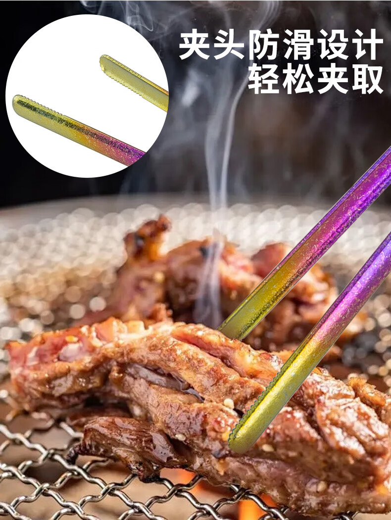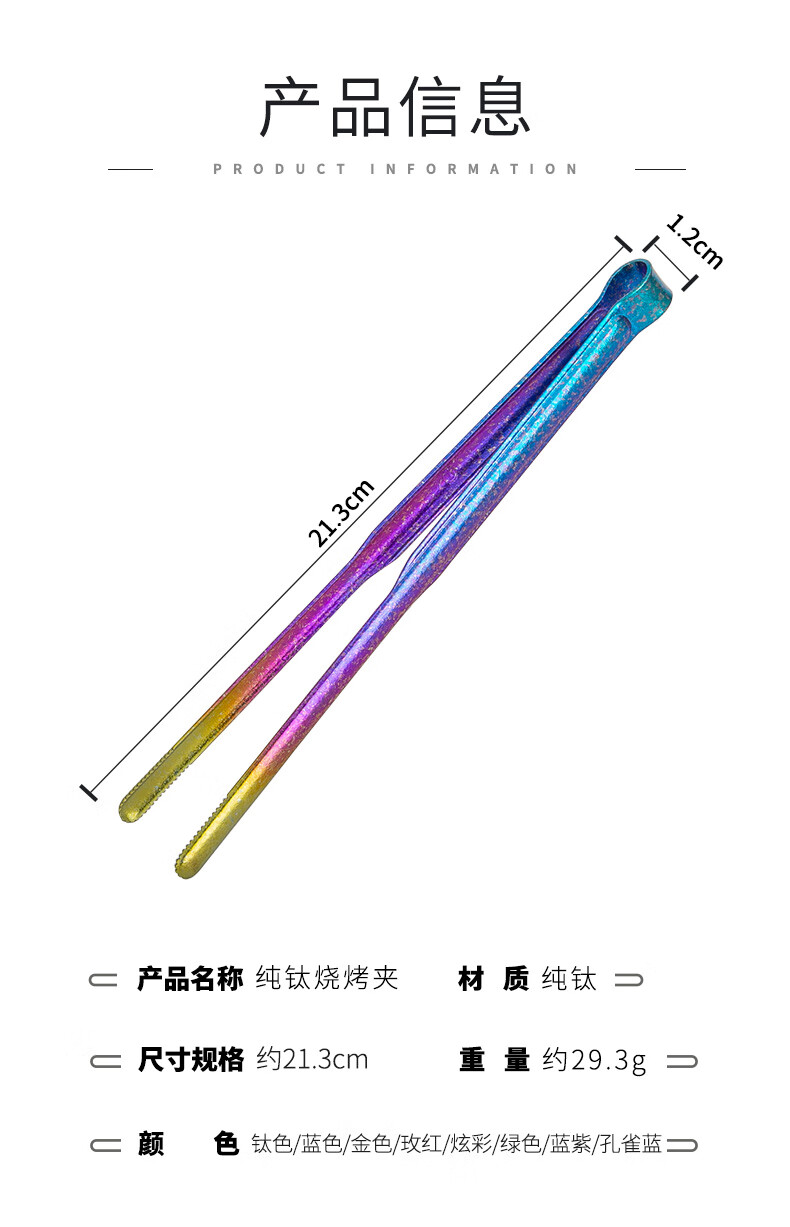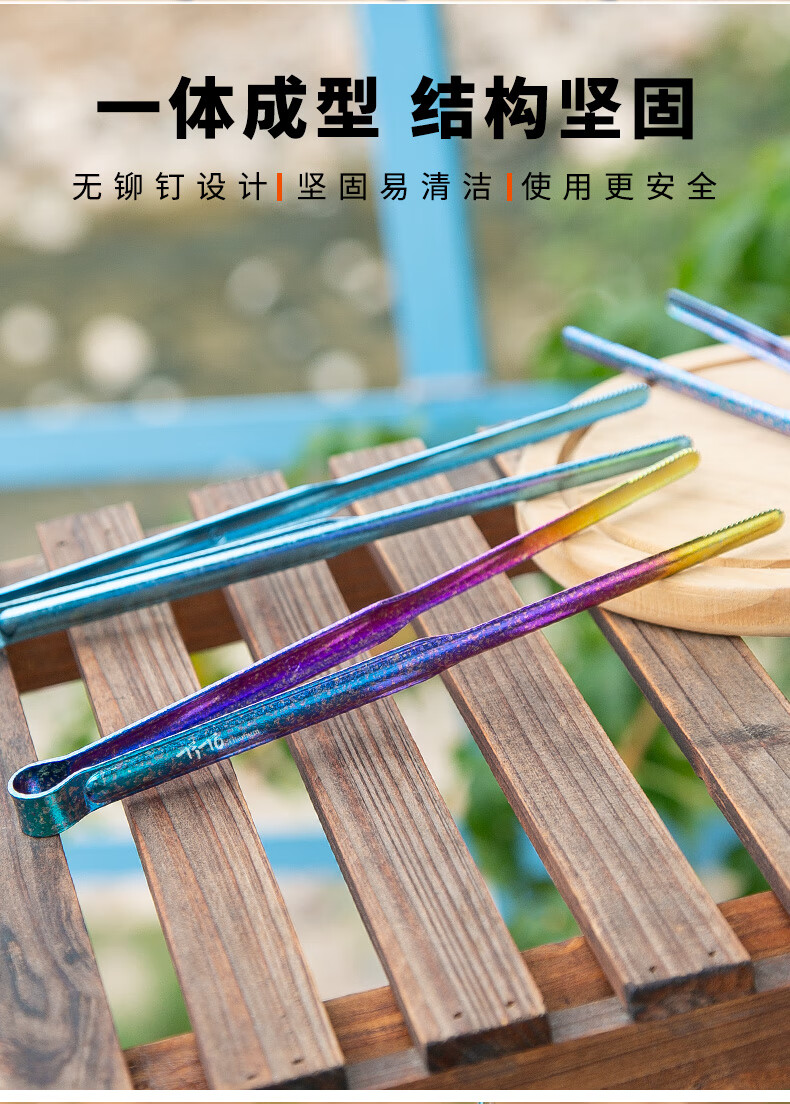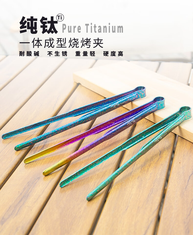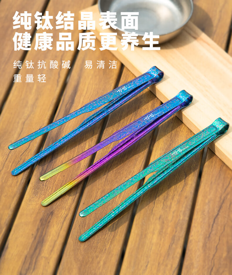 钛途(TITO TITANIUM)纯钛烧烤夹家用户外露营野餐防烫耐高温轻量便携烧烤工具 纯钛21.3cm烧烤夹-冰花钛色