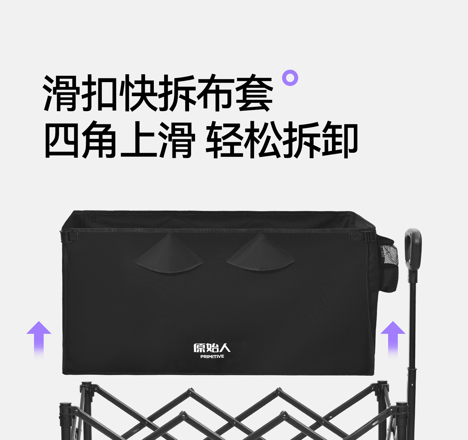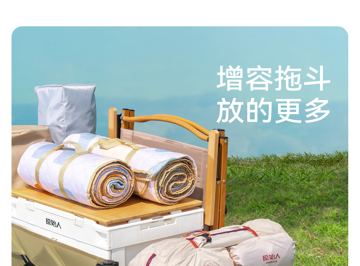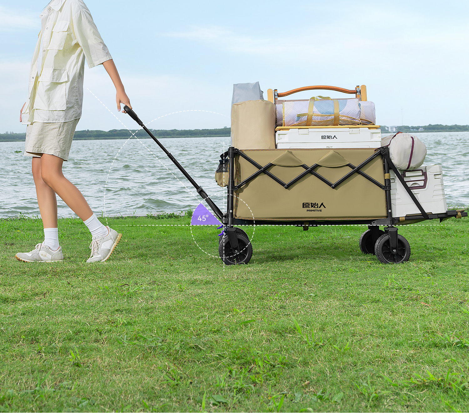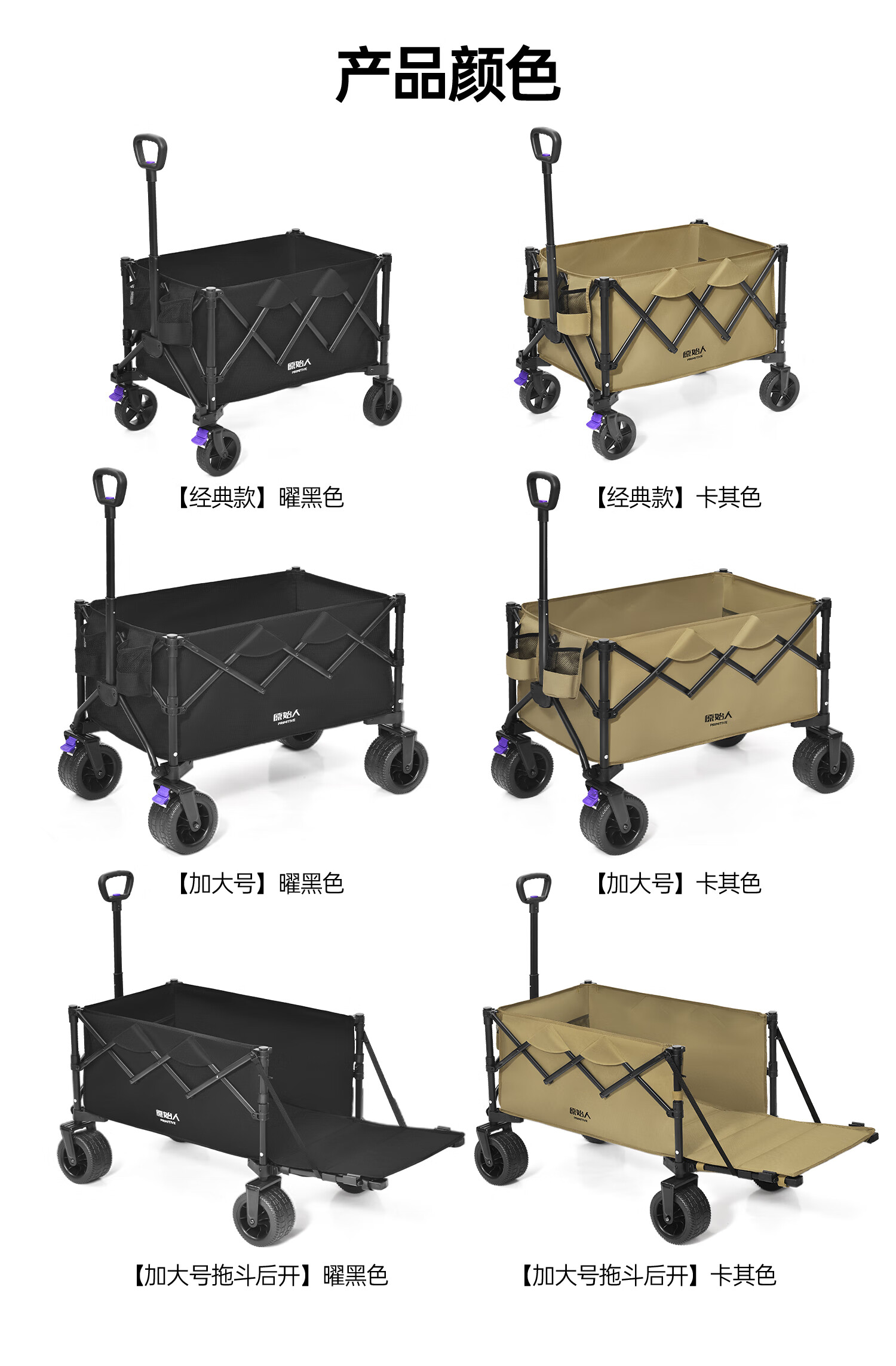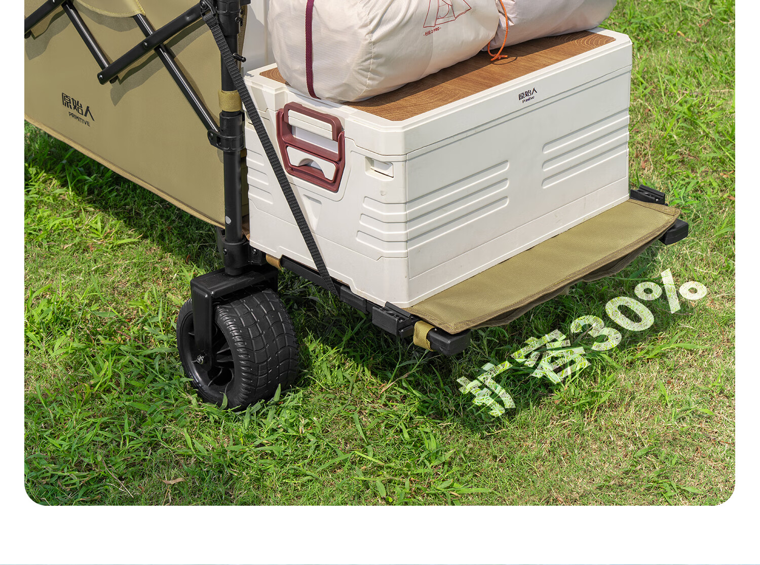原始人(The Primitive)露营车折叠推车户外野营手推车营地小推车野餐儿童可躺聚拢旅行 400L 加大款沙棕-双快拆+后开模式