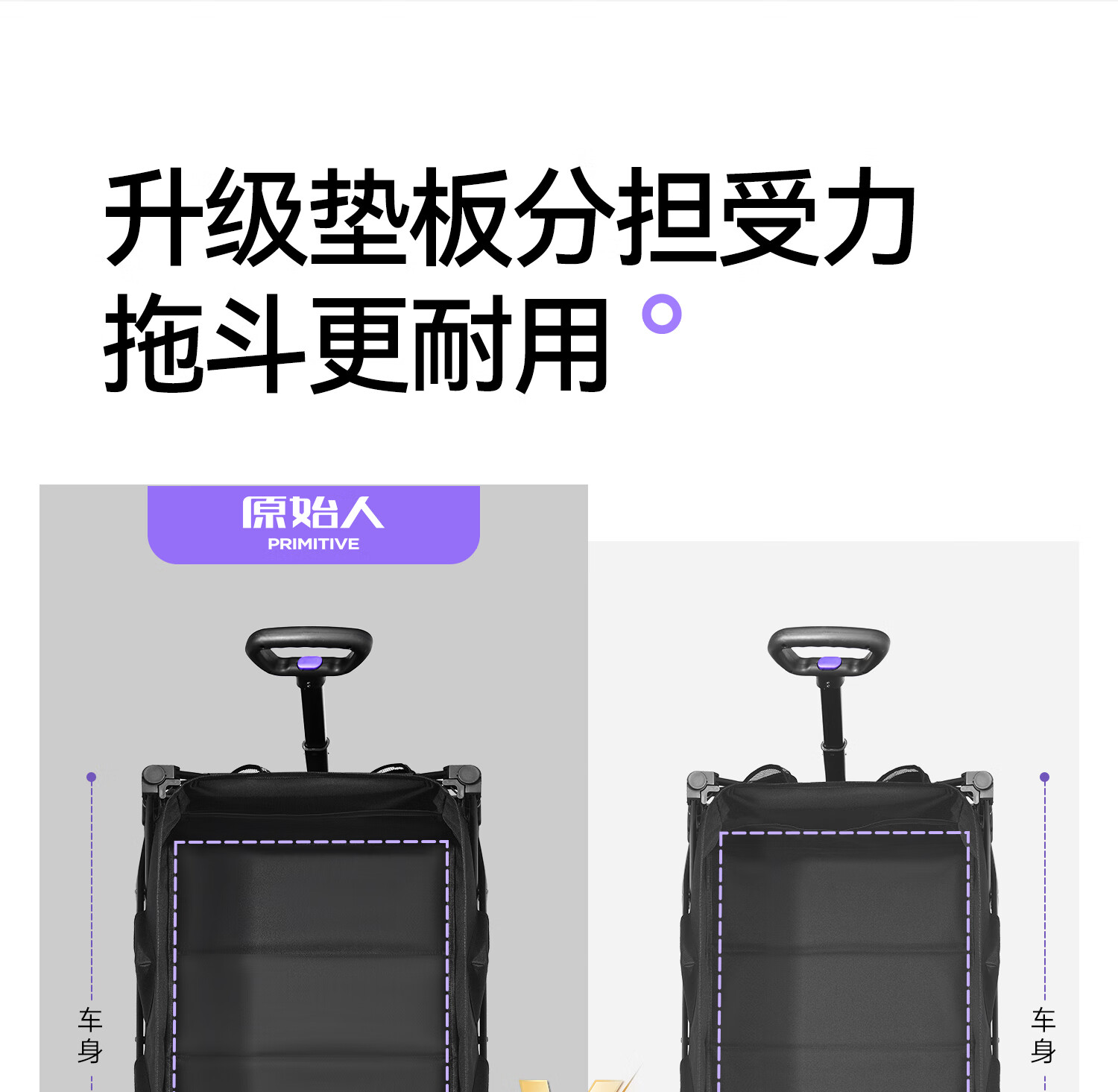 原始人露营推车户外营地拖车旅行可折叠手推野餐野营手拉车遛娃小拉车 420L 咖色【后开加大越野款】
