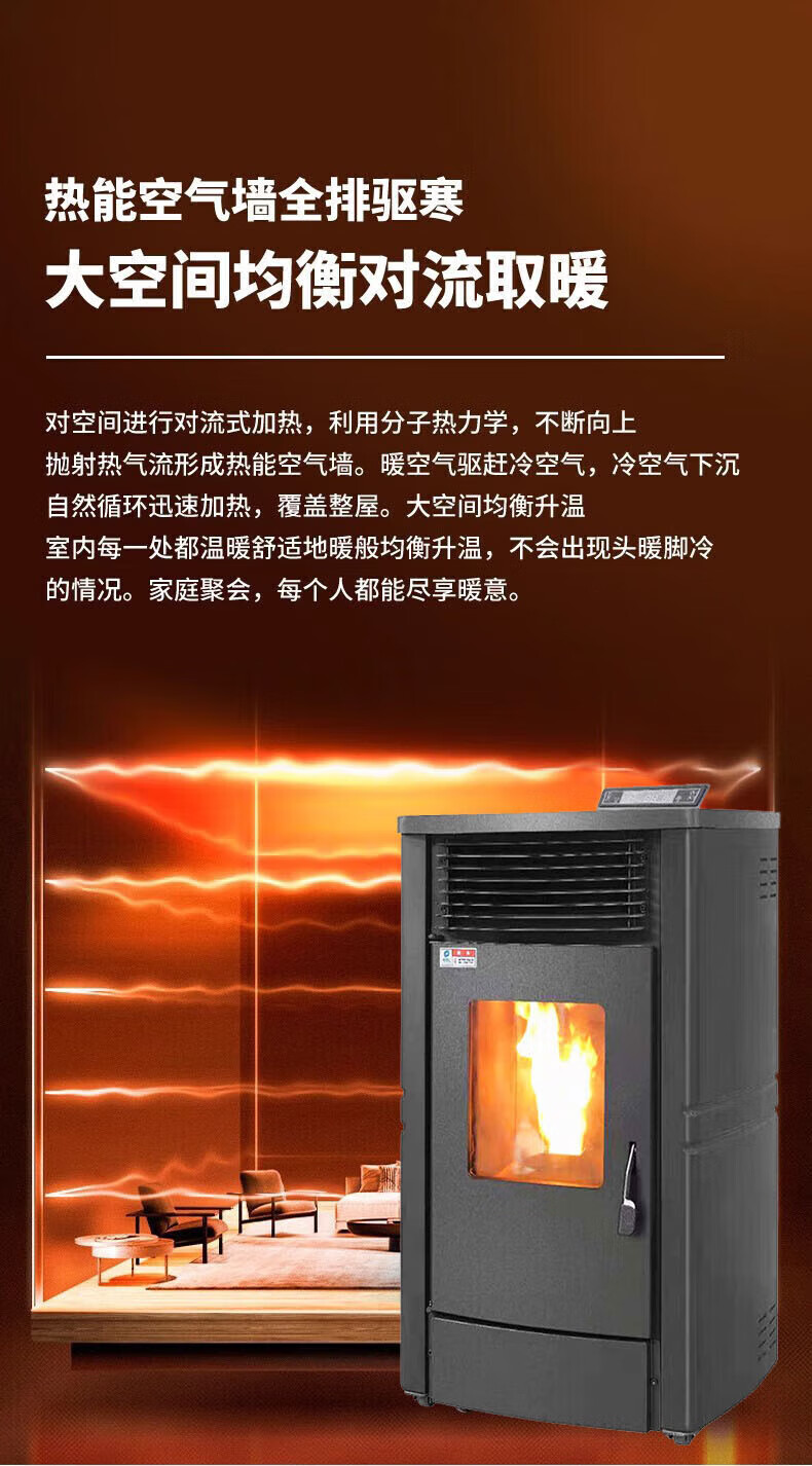 丰强鸿新型颗粒取暖炉全自动生物质燃料柴火家用室内供暖环保无烟水暖 【WiFi旗舰+炊事烧烤+颗粒木柴两用】260双绞龙双电机
