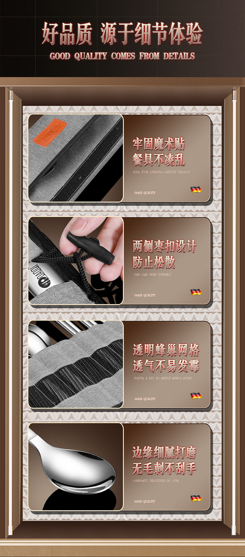 一直选择他们家的餐具,是304食品级的,给宝贝用的更安心一些。性价比绝对是超高。搭配包包,携带比较方便。其次他们家的logo看起来给人感觉很舒服,会推荐朋友购买的,比心♥️。