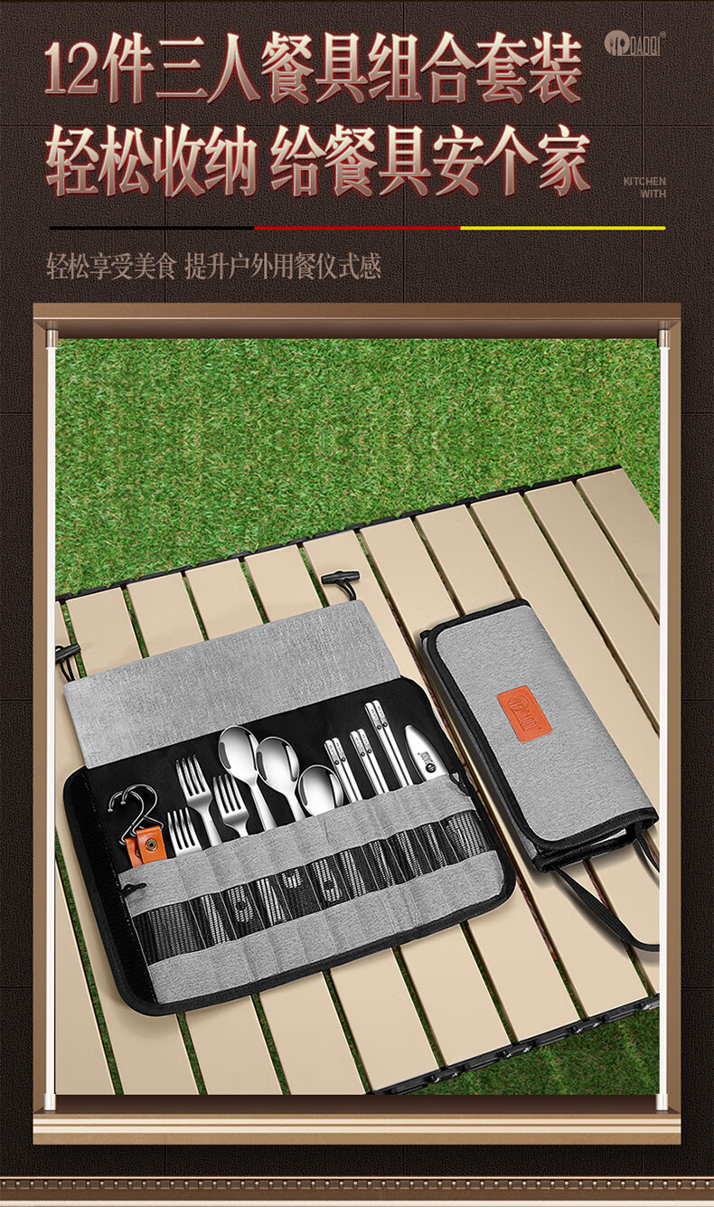 岛奇(Daoqi) 岛奇不锈钢户外旅行露营野餐餐具碗筷刀叉盘杯便携套装自驾游 3人装(户外商家推荐)